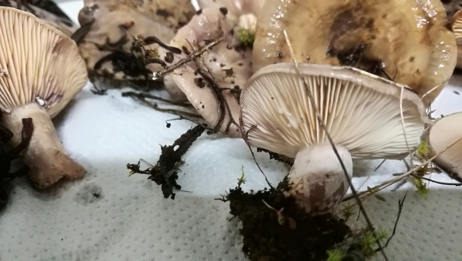 Hola Fran, las primeras por el porte si eran de un tamaño considerable Lepista nuda, las segundas a primer golpe de vista mi primera impresión habría sido Hygrophorus, aunque si estaban muy mojados y soltaban látex como parece apreciarse si que podría tratarse del Lactarius cistophilus que nos propone Ángel, con la tercera por la densidad laminar si que podría tratarse de senderuelas, aunque por su aspecto no lo tengo claro del todo, con esta para poderla confirmar tienes que probar si aguanta muy bien la torsión del pie hasta 2 o 3 vueltas sobre si mismo, para disipar dudas, aparte del olor que en el caso de las senderuelas debe ser ciánico (a almendras amargas).