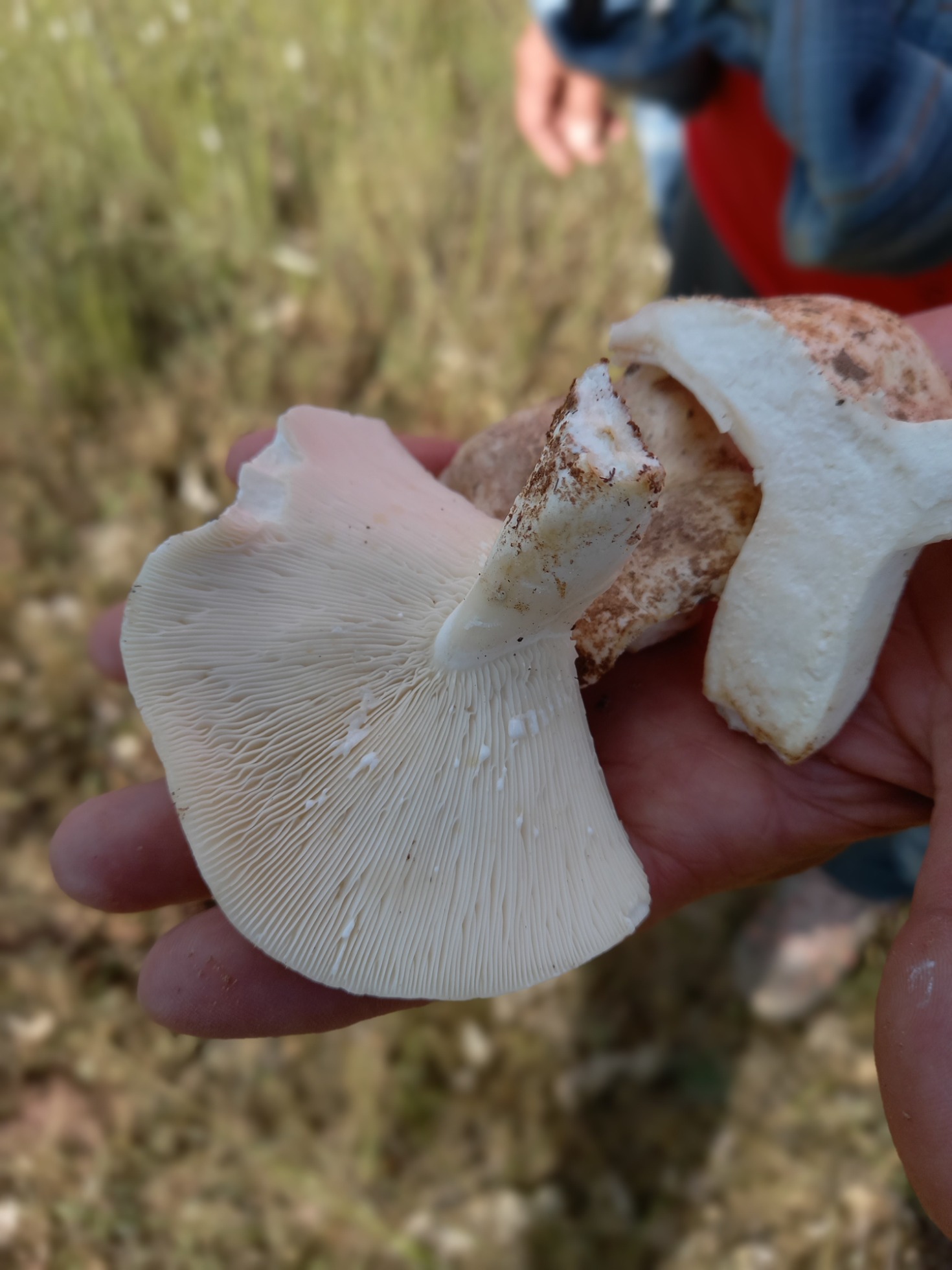 Hola Salvador, la primera, en mi opinión, es Lactarius piperatus. Su látex es muy picante. La segunda Russula sp. En este genero muy dificil llegar a su especie con la única ayuda de fotos. Un saludo.