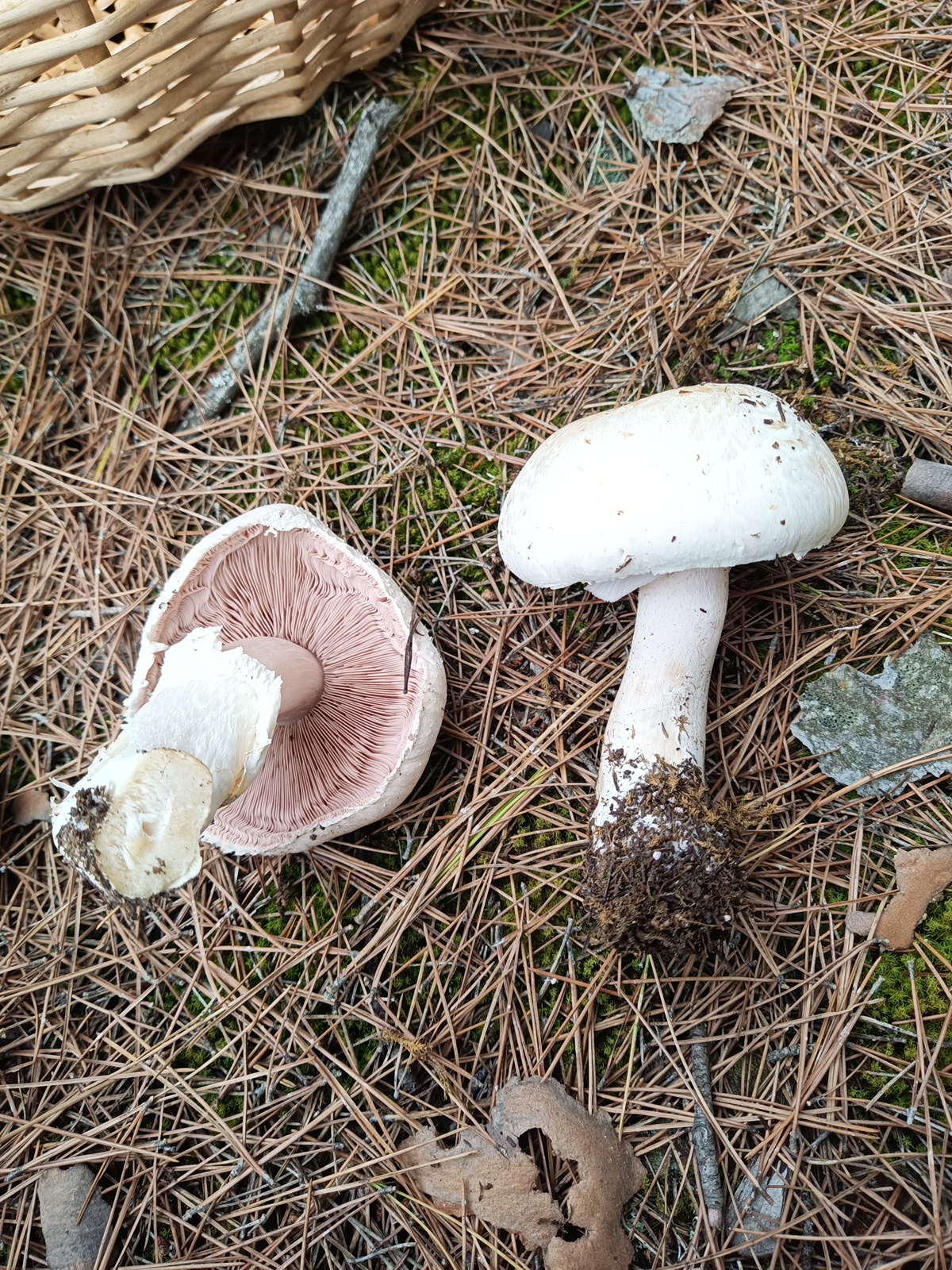 Hola a todos! Paseando por un pinar nos hemos encontrado varios ejemplares de este tipo. Creo que son agaricus pero me gustaría saber el tipo. Los hemos visto tanto cerrados como bastante aplanados, sus láminas desde el blanco hasta el marrón pasando por el rosa claro. Tiene olor anisado y salían en zona de musgo. Muchas gracias de antemano!!