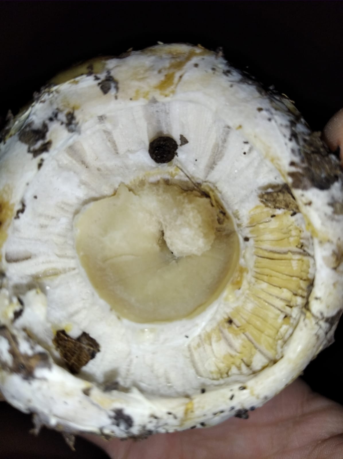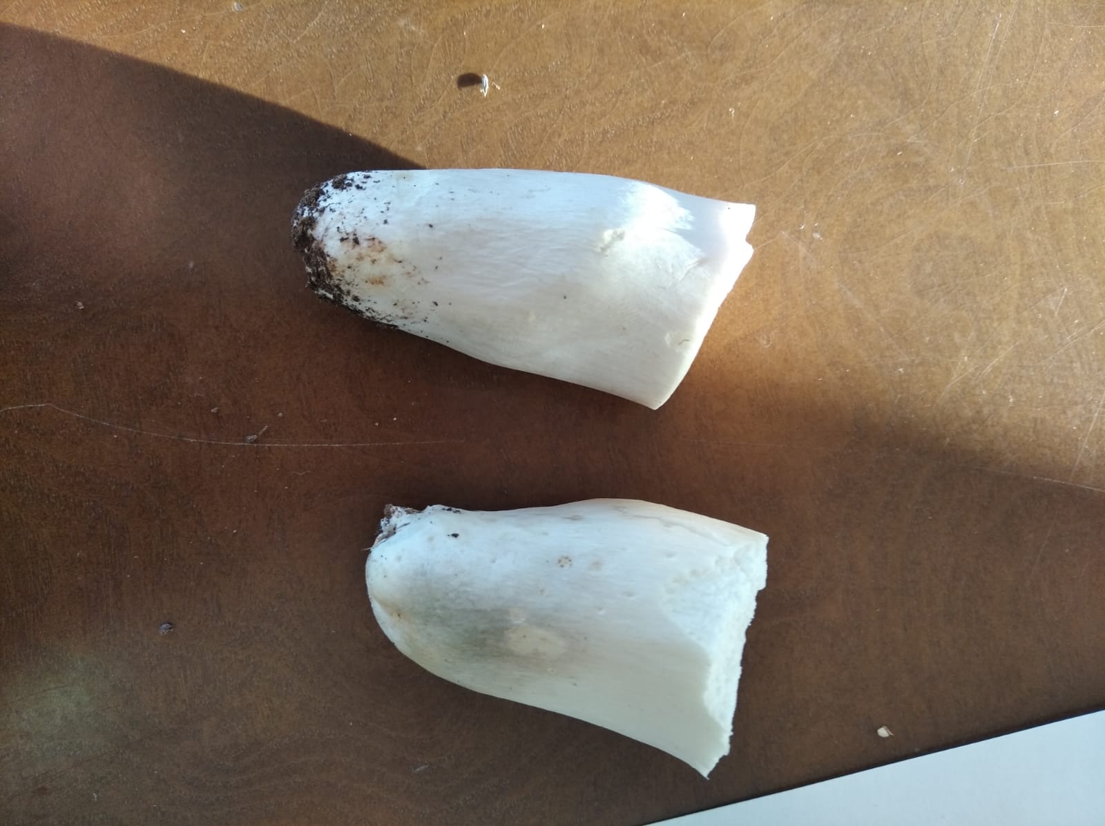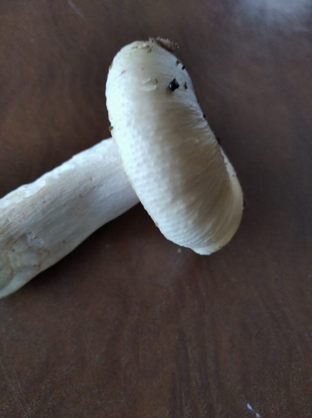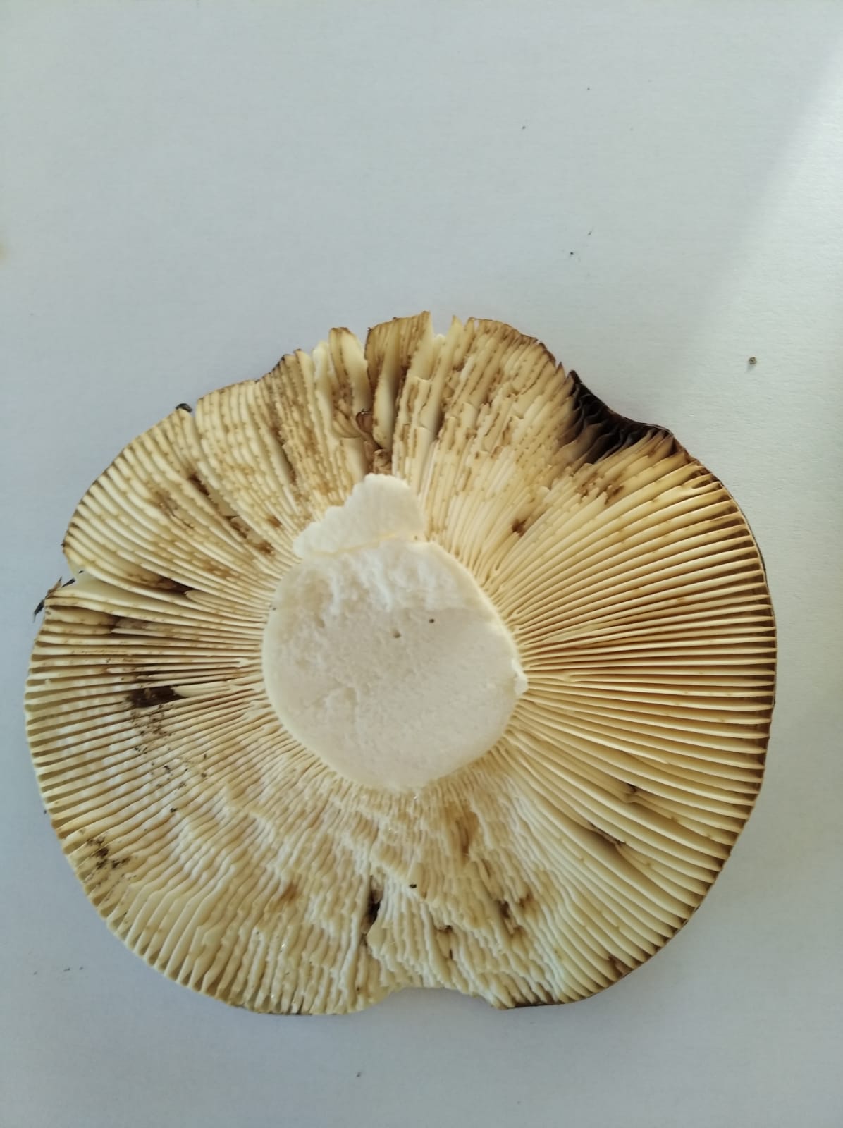 3.Es muy fibrosa, con una serie de puntos en relieve apreciables en una de las fotos. Las làminas son blancas-crema.