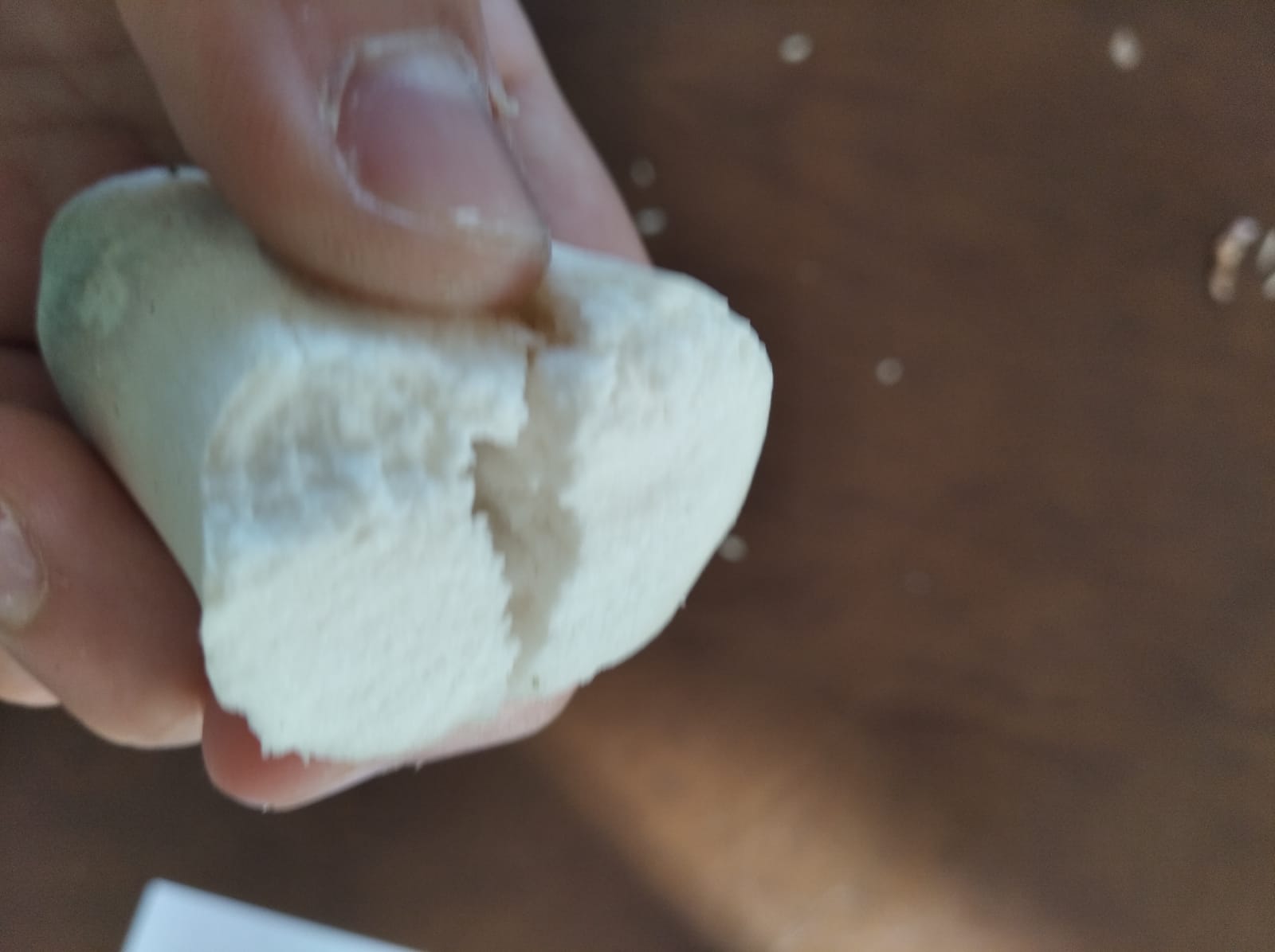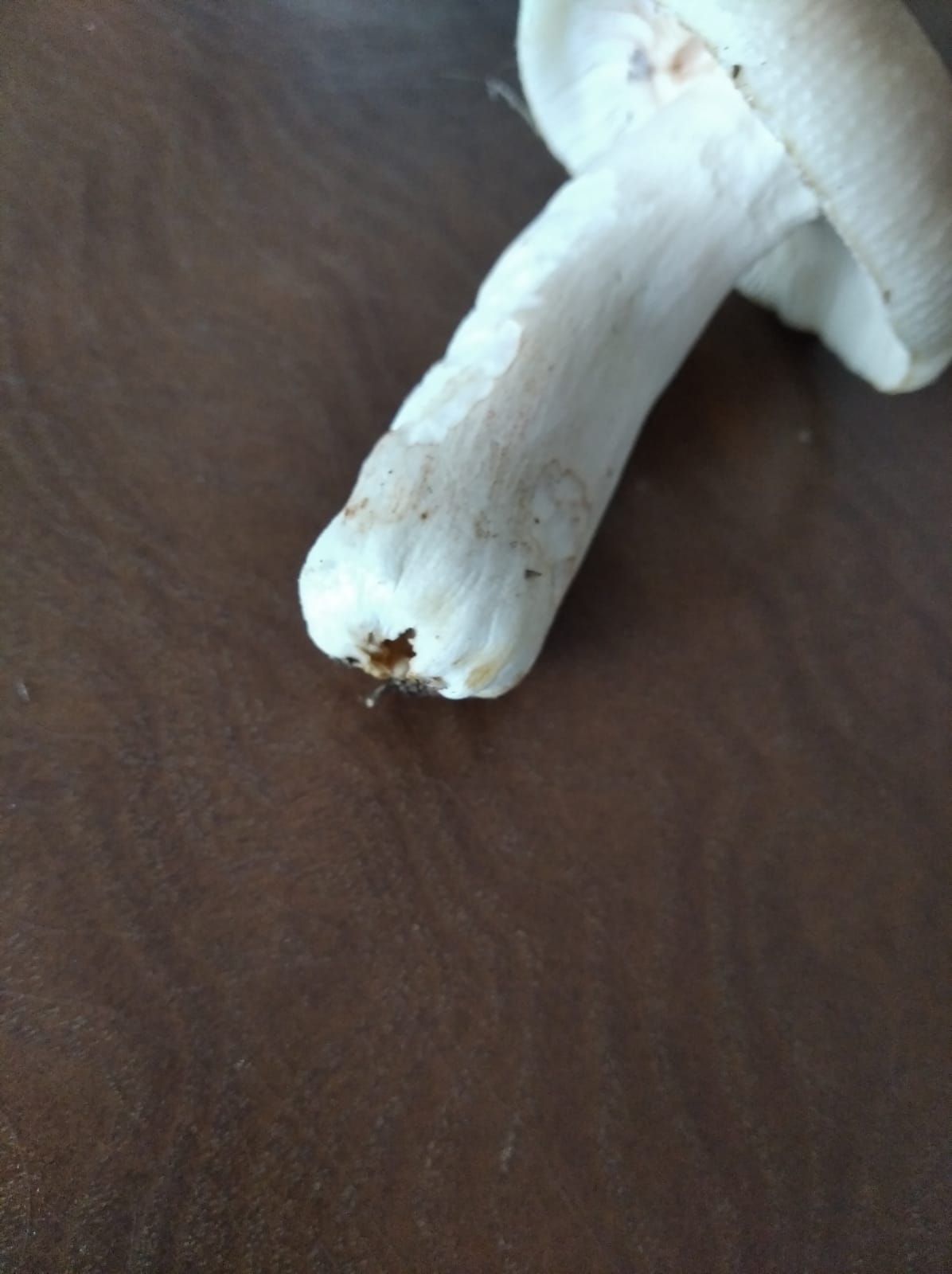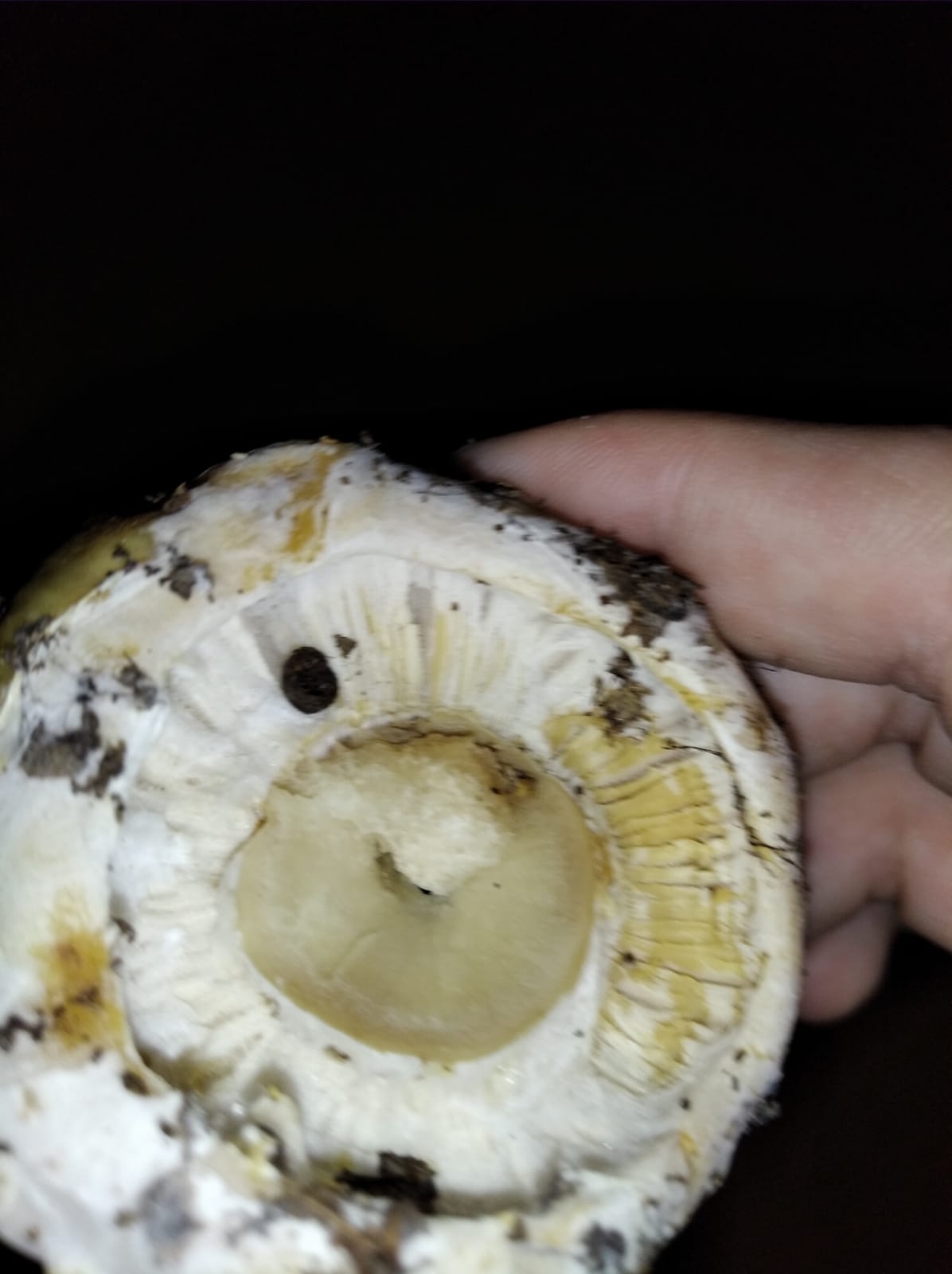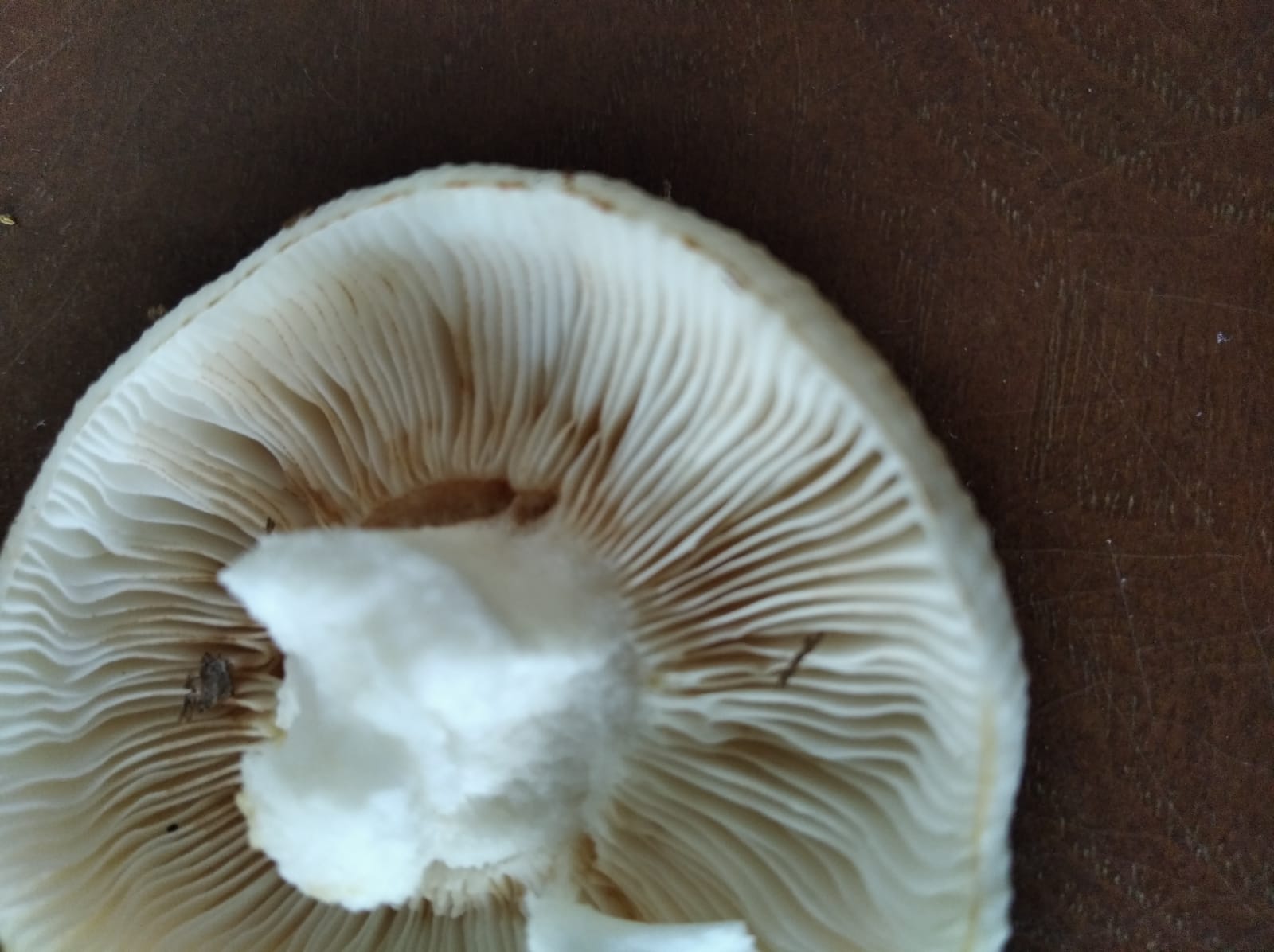 3.Es muy fibrosa, con una serie de puntos en relieve apreciables en una de las fotos. Las làminas son blancas-crema.