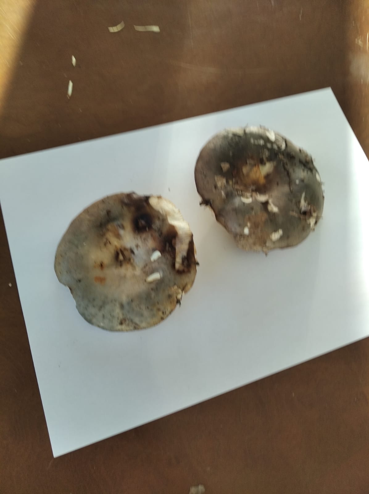 1. No tienen anillo, y son de un color gris pardo (No son viscosas) Además, la esporada es de color crema-caramelo. Mencionar que huelen bien y la carne es esponjosa.
