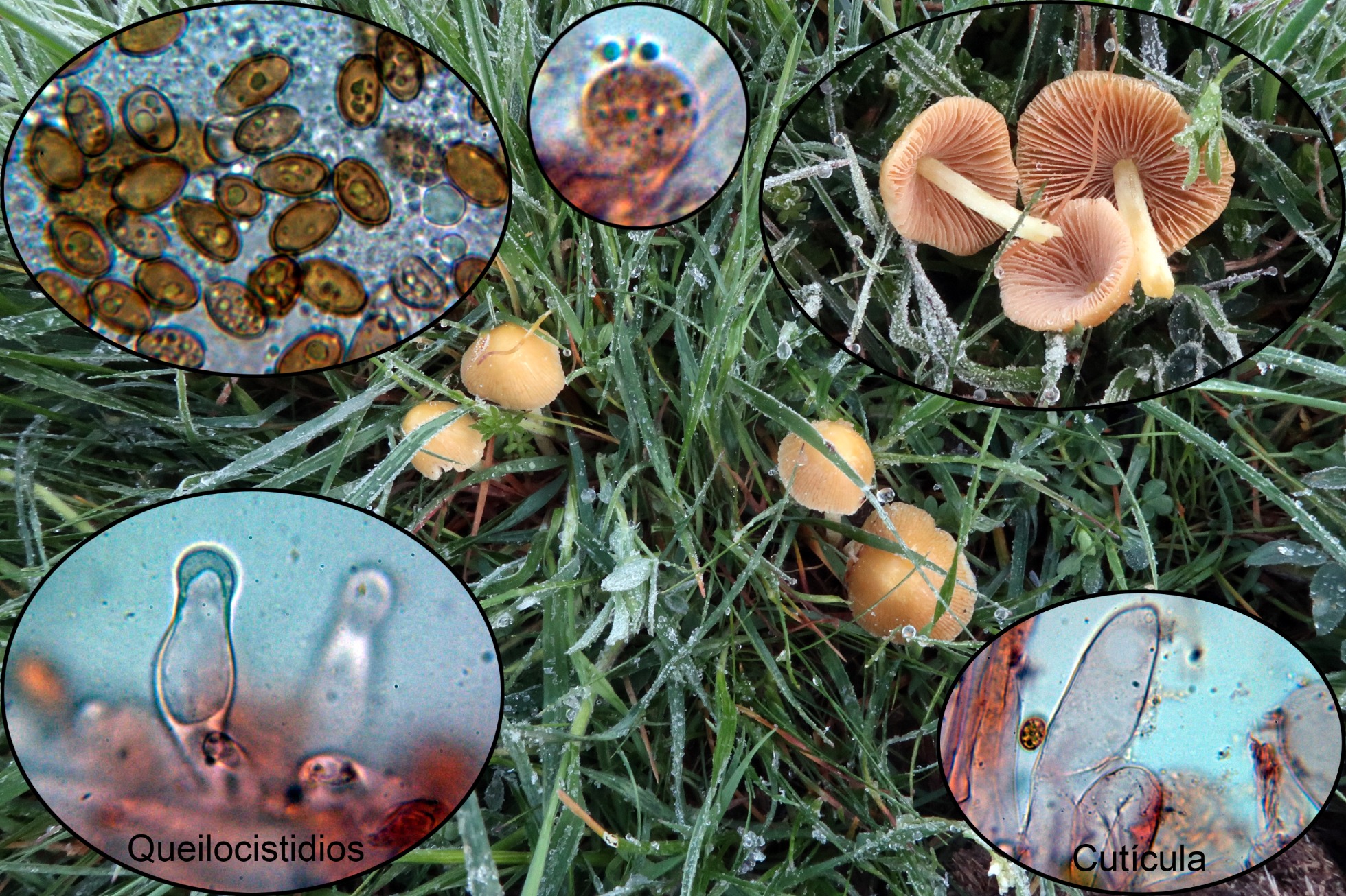 Gracias Duende por aclarar el tema, me tenía desconcertado el pie que parece amarillo, de ahí la importancia de una imágen clara del himenio, en la única imágen que nos muestra las láminas se ven casi negras, quizás por el efecto de la sombra, nunca había visto en el Bolbitius titubans unas láminas así. Dejo un resumen de los cinco estudios que he realizado al Bolbitius titubans, especie que me he encontrado en el suelo, sobre madera y hasta incluso brotando directamente sobre excrementos.