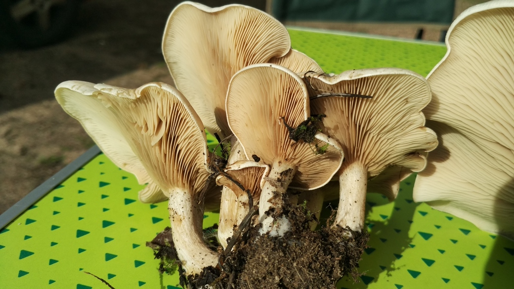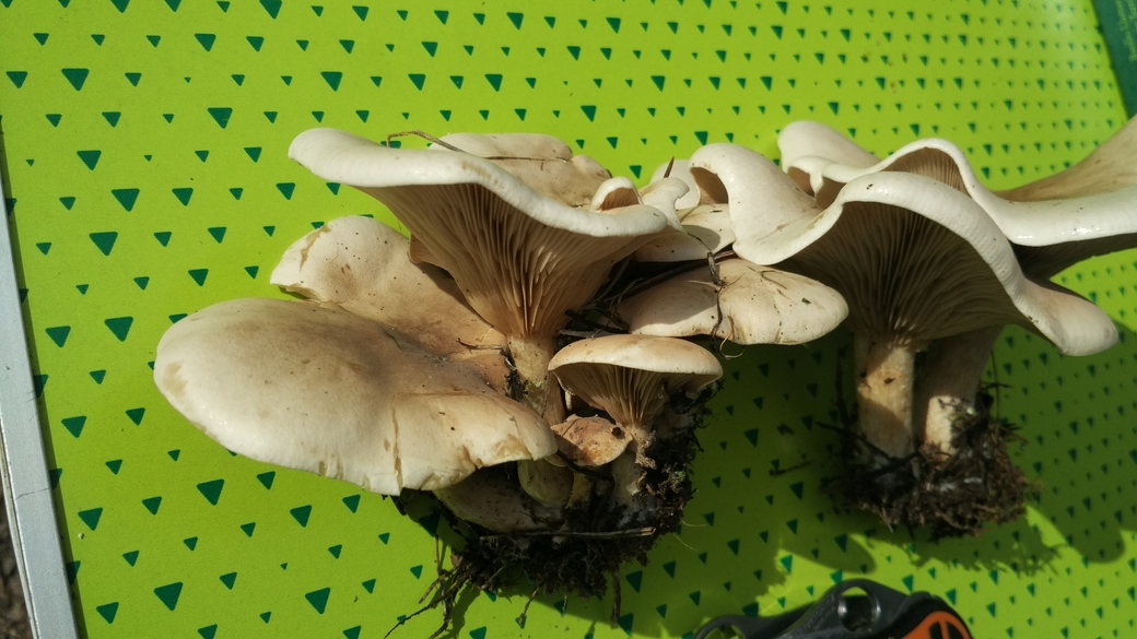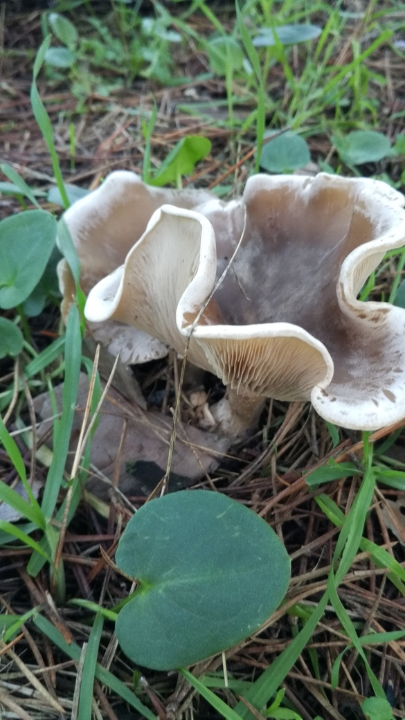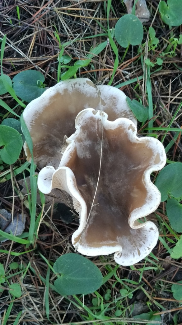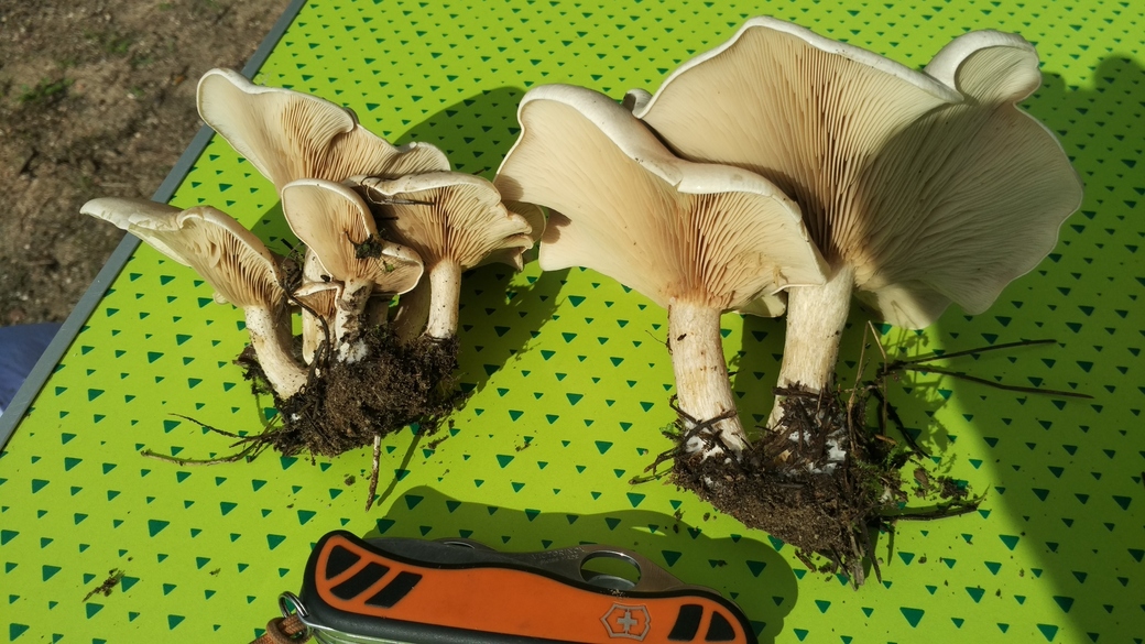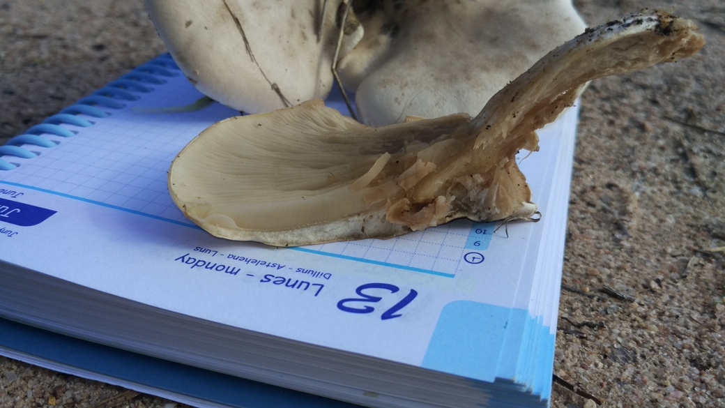 Hola Juanma, tienes que hacer caso al maestro Javi, aunque a mi estos 20 cm. que nos indicas se me antoja mucho para la Lepista panaeolus, es que no se si es por el efecto de la cámara pero me parece ver tonos crema o rosados en las láminas, quizás deberíamos considerar como opción el Leucopaxillus giganteus, aunque de tratarse de este tampoco me parece ver el margen enrollado en los ejemplares jóvenes, a ver si Javi nos puede sacar de dudas.