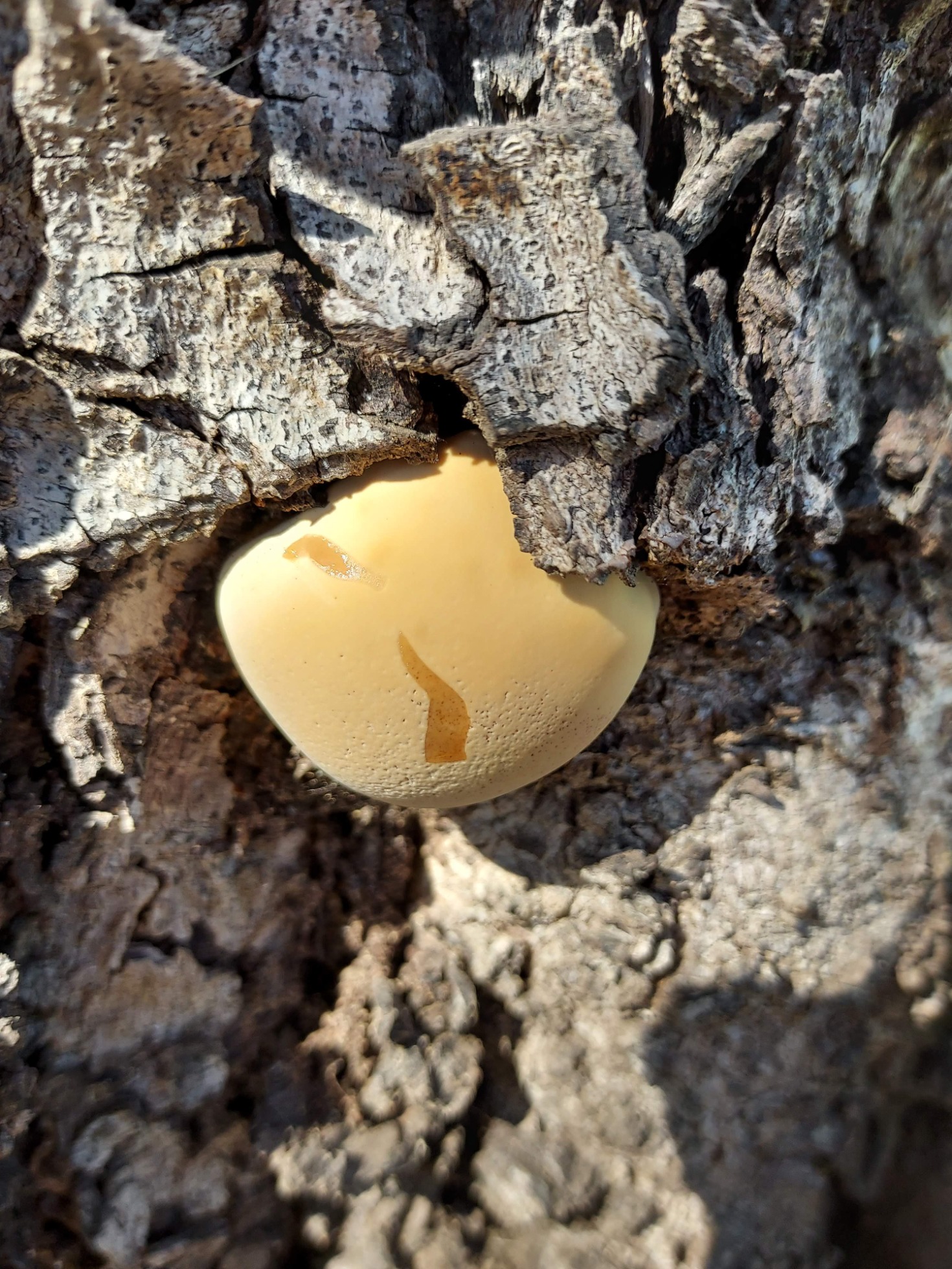 La tercera me recuerda a un primordio de Inocutis dryophila o ya se trataría de un primordio de Phellinus.