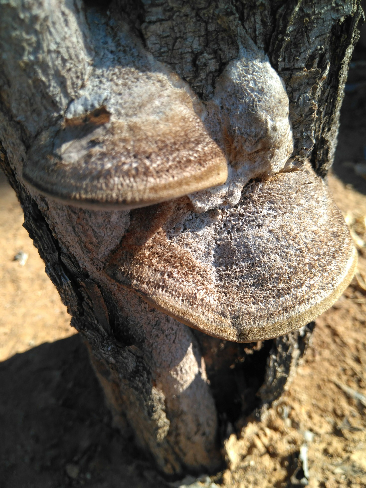 Solo una cuestión, ¿la cuarta y quinta, sobre el cuello del árbol (algarrobo) no podría ser una Ganoderma?
