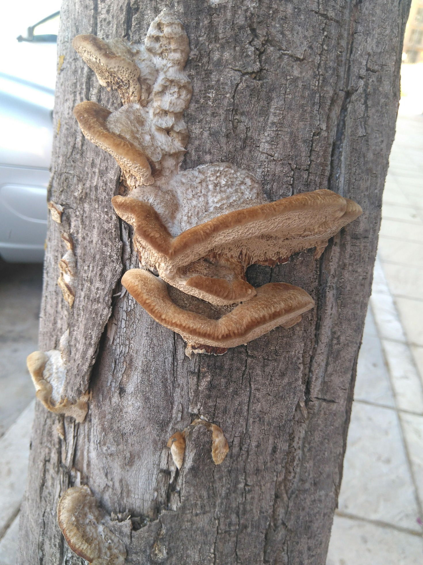 Hola. ¿Podríais ayudarme a identificar estas especies de hongos sobre arbolado urbano?