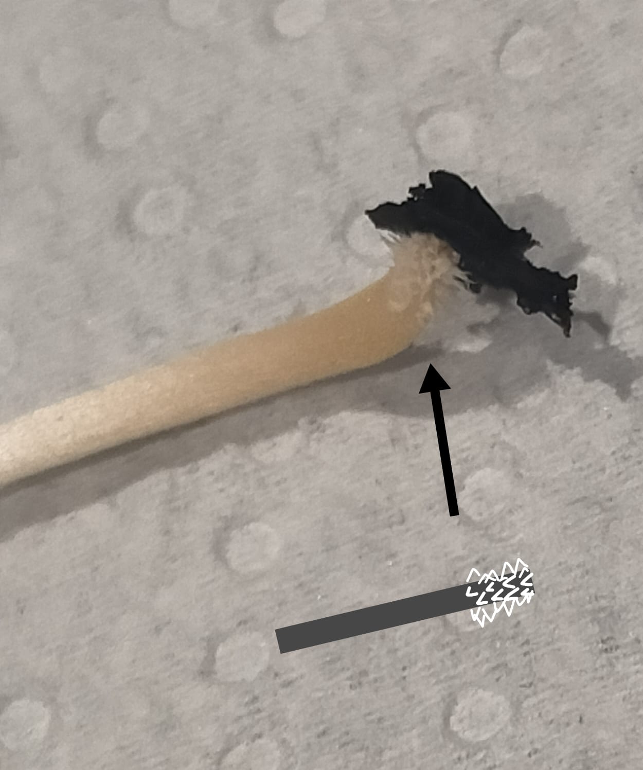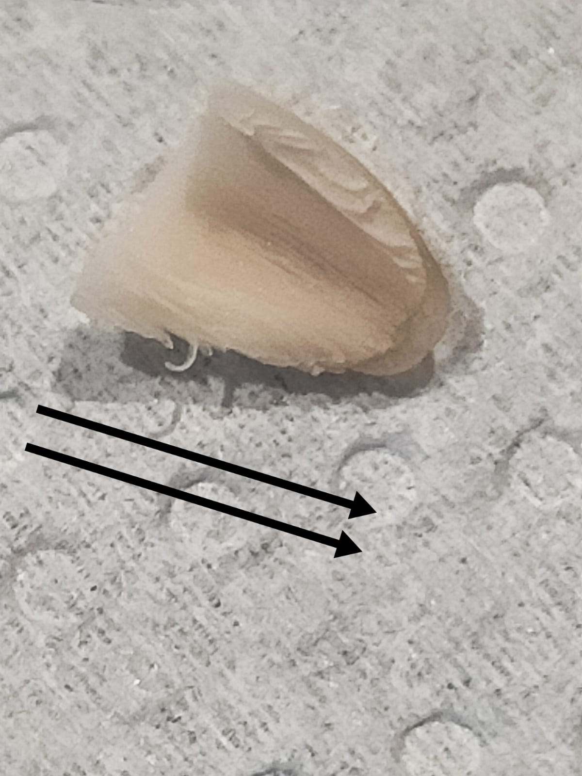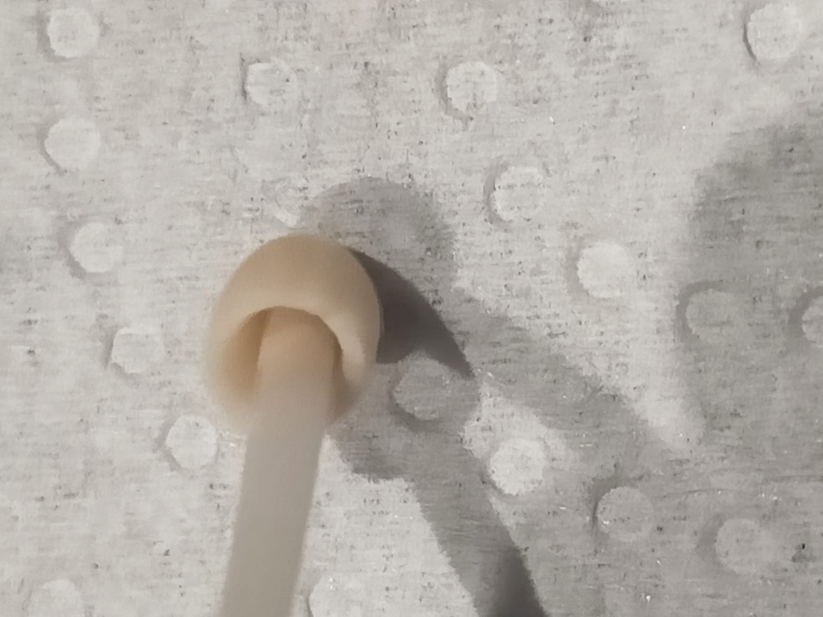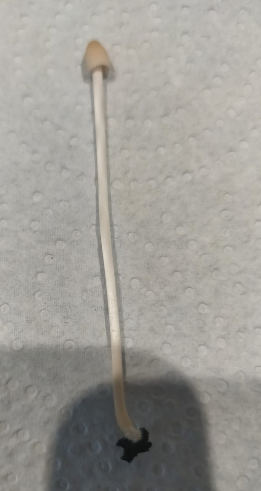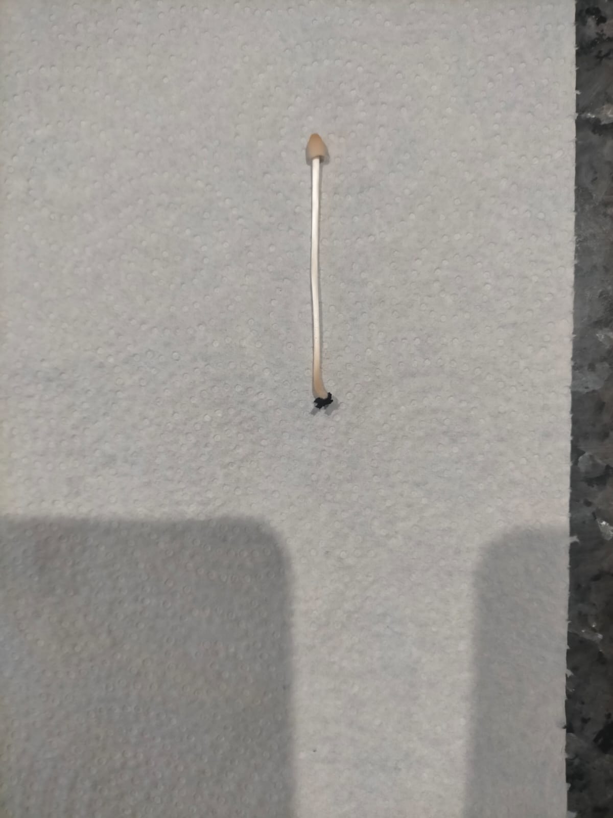 Como se puede comparar en relación de los puntos de relieve del papel de cocina, el sombrero es muy pequeño, de 0.5 cm aproximadamente, además, el pie es extremadamente largo en relación del sombrero, llegando a los 6-7 cm.