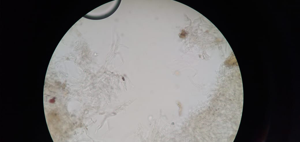 Hola Juan y Alexis, lo ideal a la hora de estudiar una especie es la de disponer al menos de un par de ejemplares, a ser posible uno en estado joven y otro ya más desarrollado, por desgracia en muchos casos si el ejemplar del estudio está poco desarrollado en la microscopía no aparecen los elementos necesarios para su correcta identificación, con las imágenes micro que nos muestras ni tan siquiera podemos determinar si se trata de un Ascomiceto o un Basidiomiceto, la primera de las imágenes podría corresponderse a esporas, sería interesante el conocer sus medidas, o por lo menos a cuantos aumentos ha sido tomada, es que si la imágen no es a 1000 aumentos no se pueden apreciar los detalles de la ornamentación, muy importantes a nivel taxonómico.