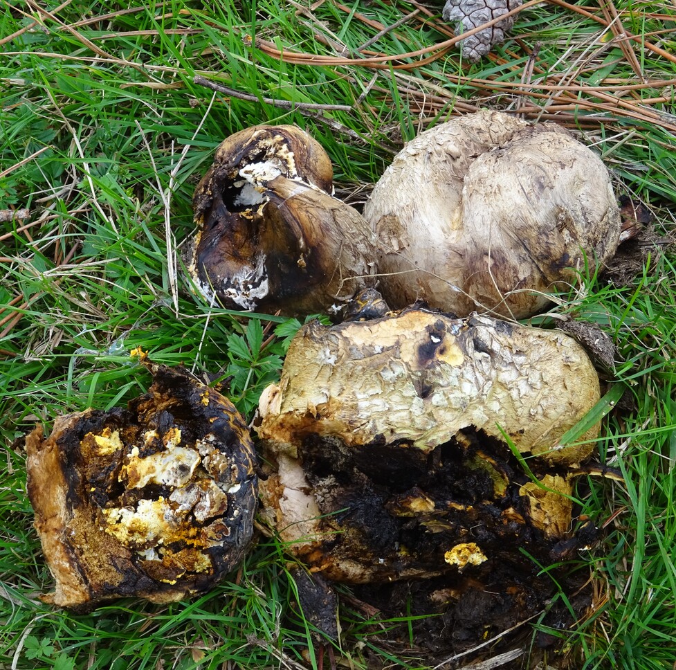 Hola Oskar, coincido contigo en la 4/5/y 7, la 1, 2, y 6 creo que son ejemplares jóvenes de Pisolithus arrhizus, y la 3 una Sparassis crispa parasitada por otro hongo, saludos
