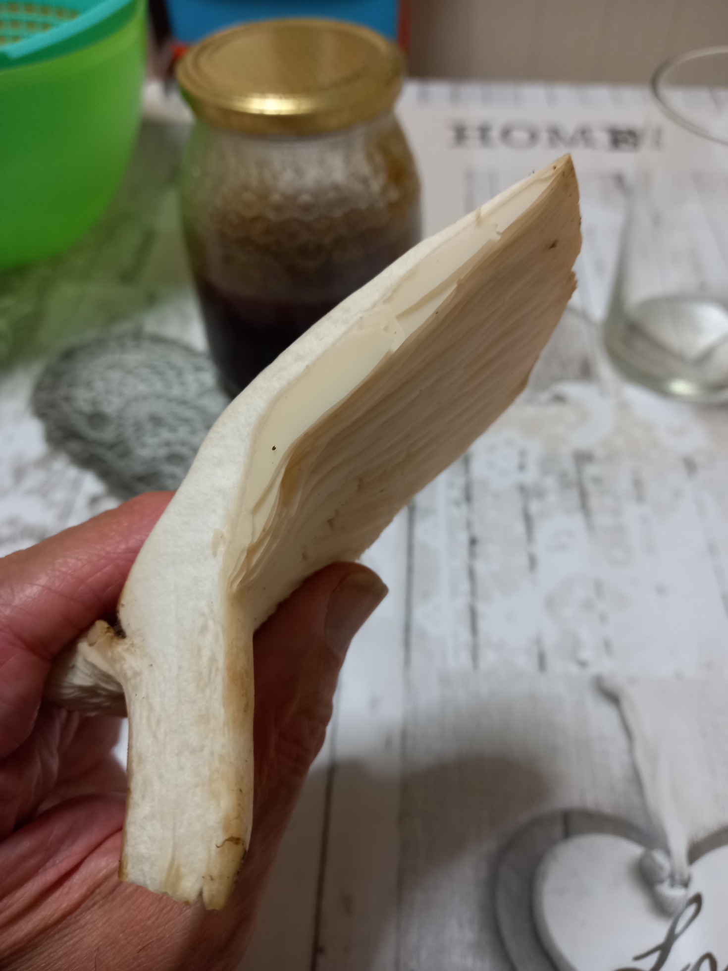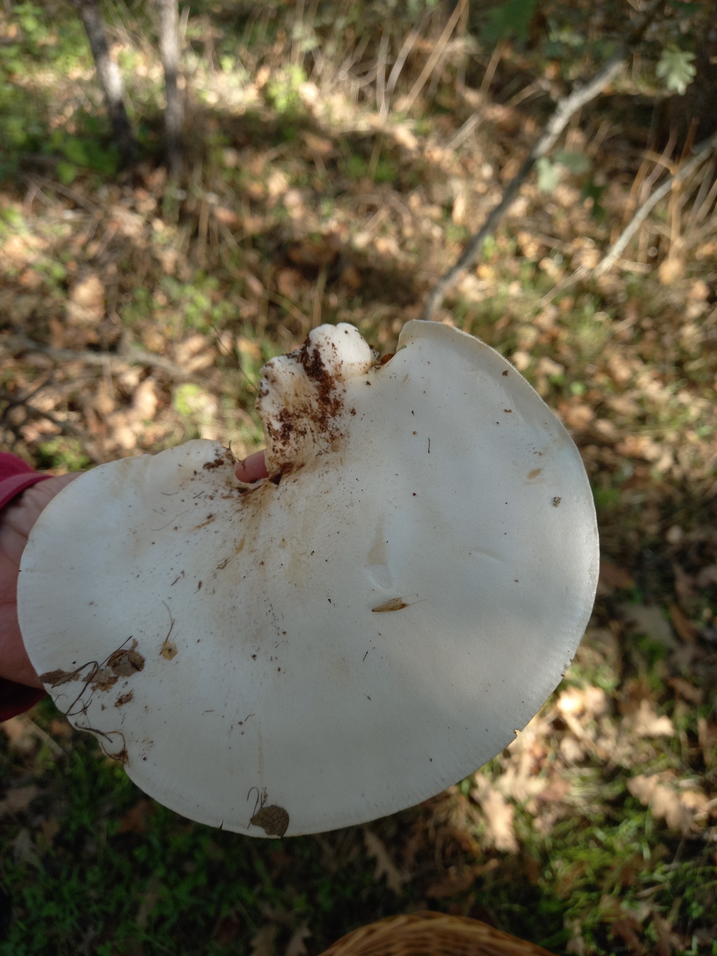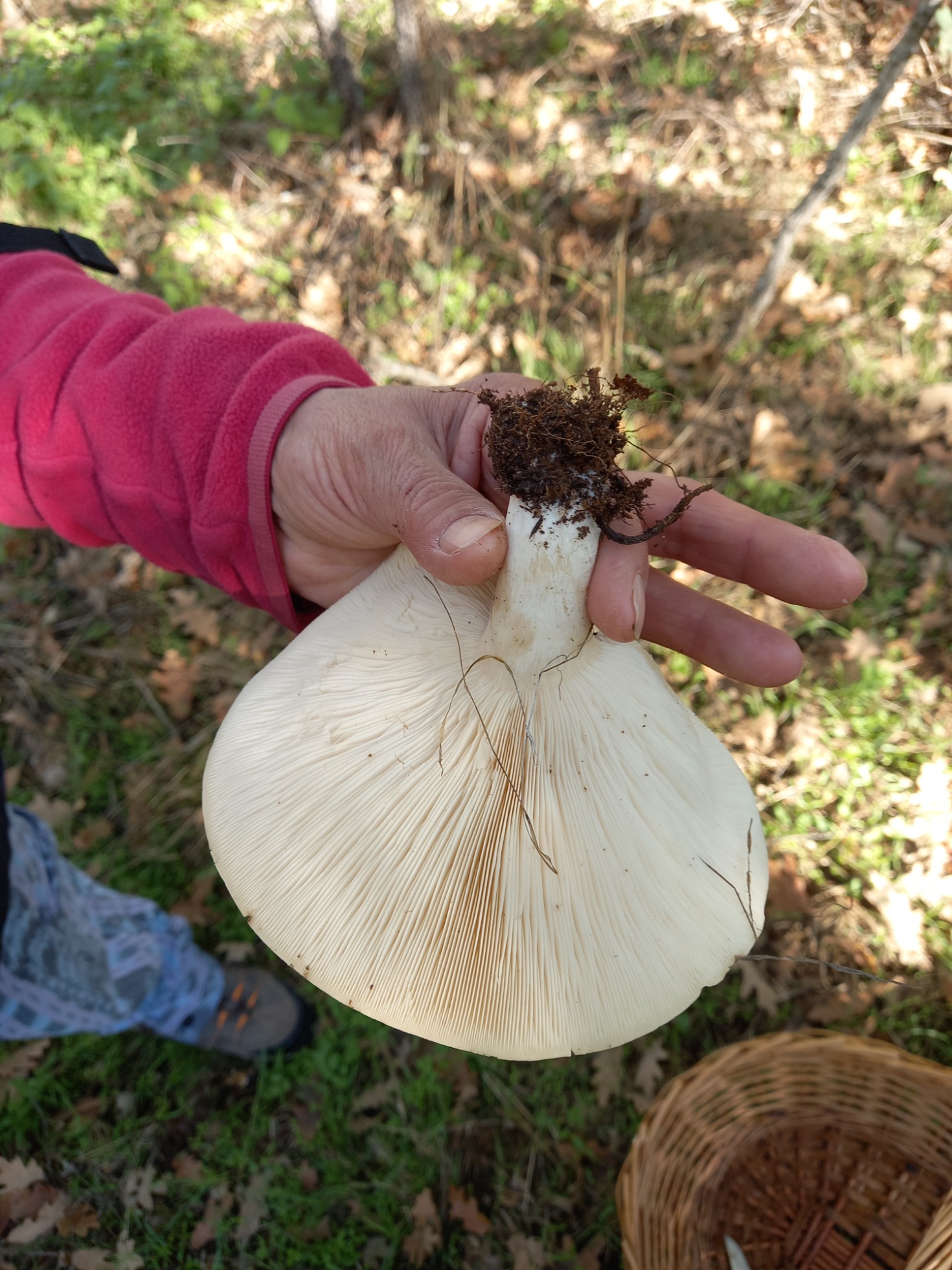 Hola Salvador. También creo que, como te dice Javi, se trata de Leucopaxillus candidus (n.d.: Aspropaxillus candidus). Lo que me extraña es lo que comentas del olor, ya que debería oler a harina. Creo eres de la zona de Salas de los Infantes, y te puedo asegurar que este año ha salido de forma abundante. Casi siempre la había visto en pradera y en claros de bosque, pero este año he visto algún setal en el interior de pino con roble. Saludos.