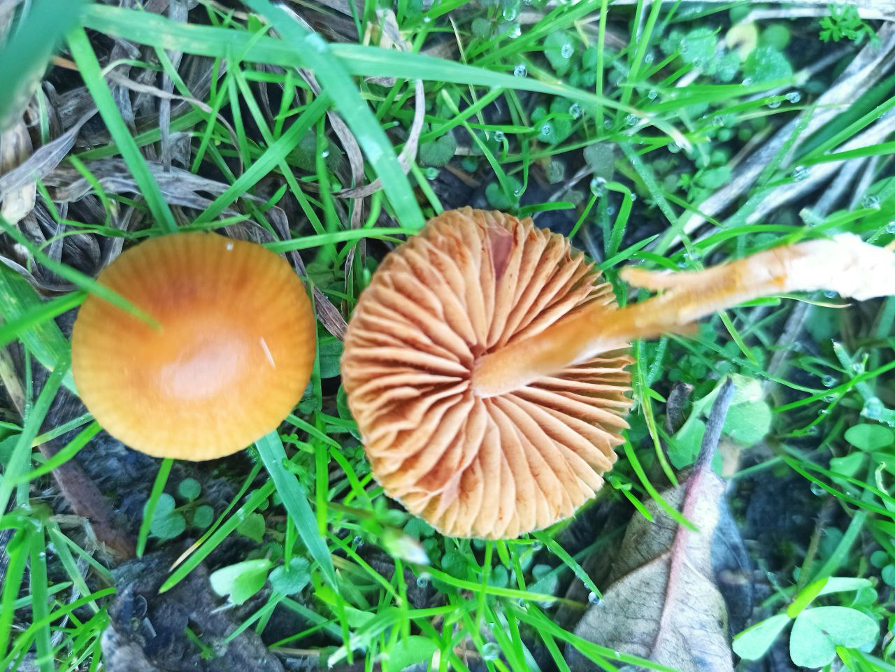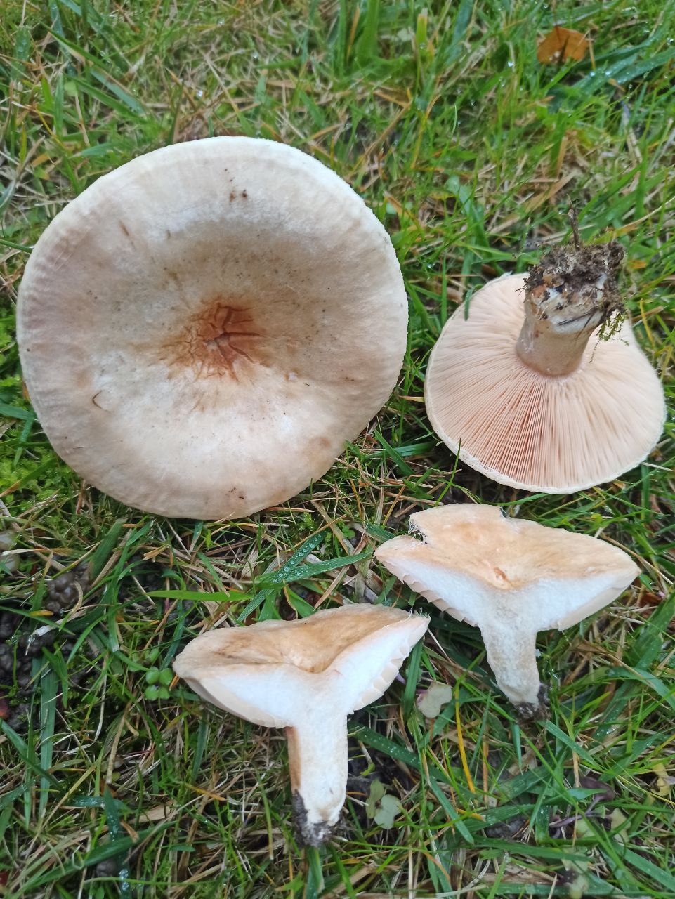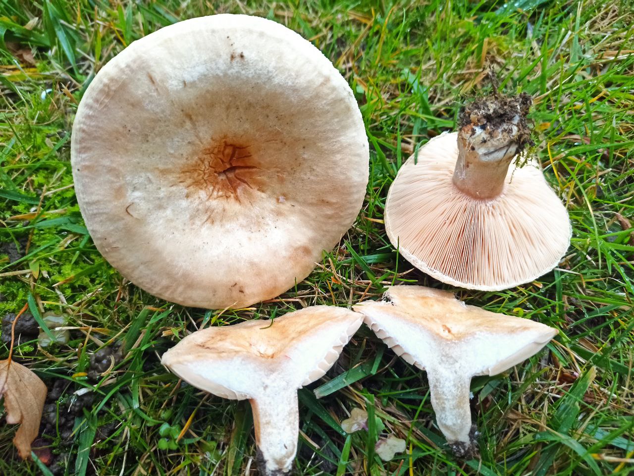 En un jardín privado en la zona norte de la provincia de León. Gran tamaño. Había pensado en Clitocybe alexandrii, pero tengo entendido que solo crece bajo encinas, y aunque hay algunas cercanas, están a bastante distancia.