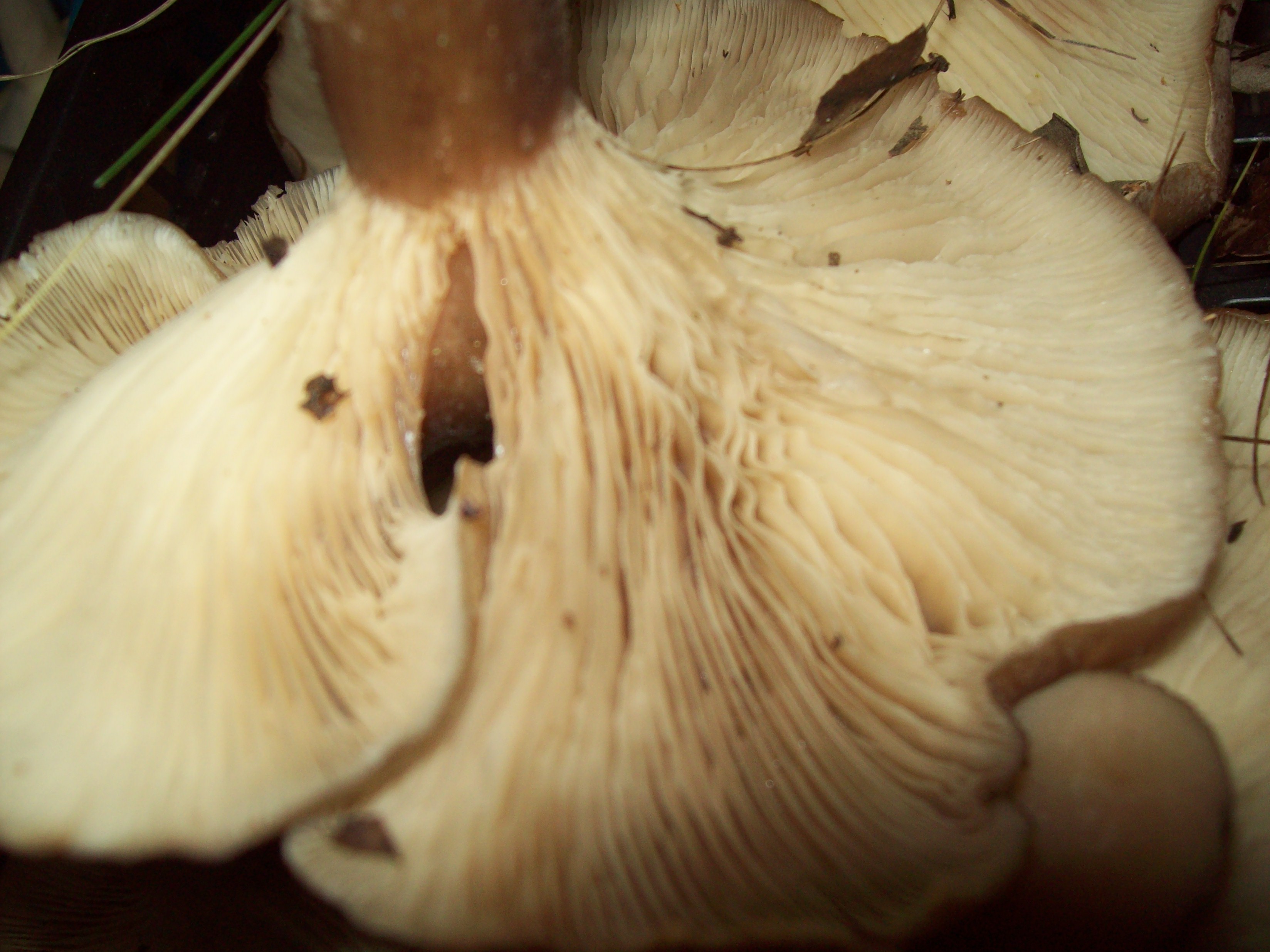También me llamó la atención el detalle de las láminas sinuosas que tenian varios ejemplares y el pié marrón de los ejemplares maś grandes. El olor y la carne coinciden con las descripciones y con las que he encontrado en otras ocasiones y que he comido con menos paranoia ya que cuando me enteré que es tan fácil la confusión con la Entoloma Lívidum, no he conseguido degustarla como lo hacía antes. Ahí va la foto: