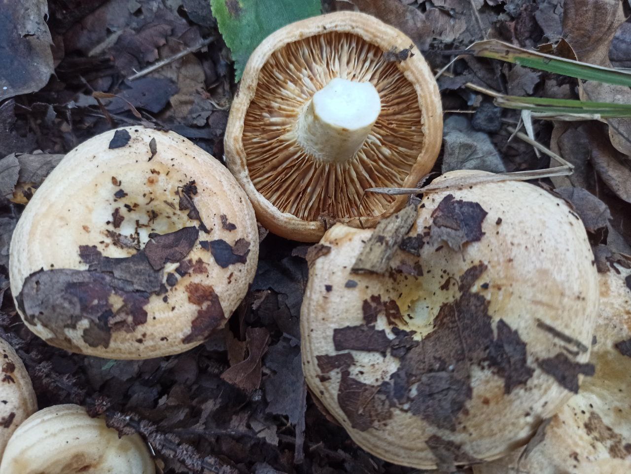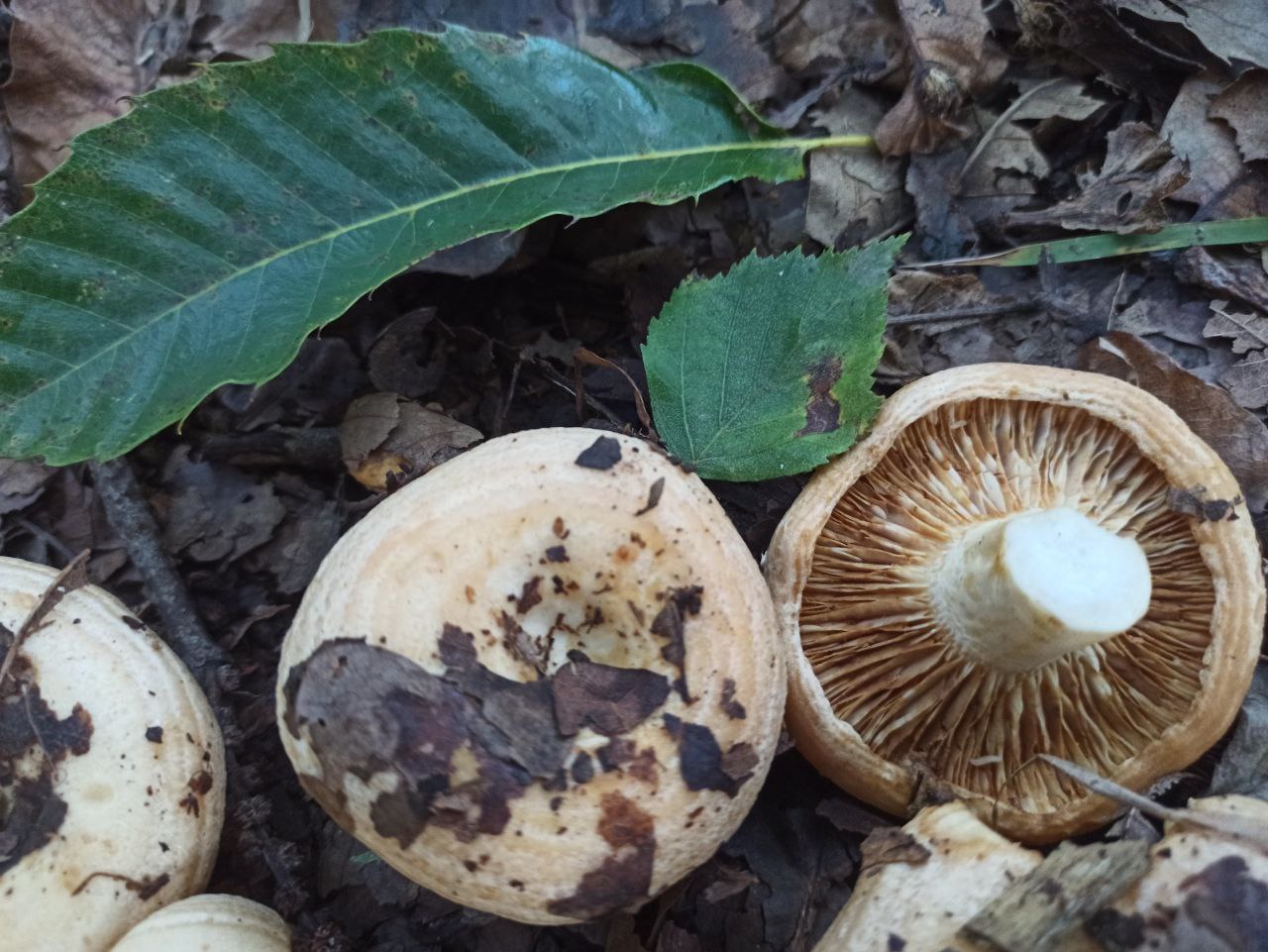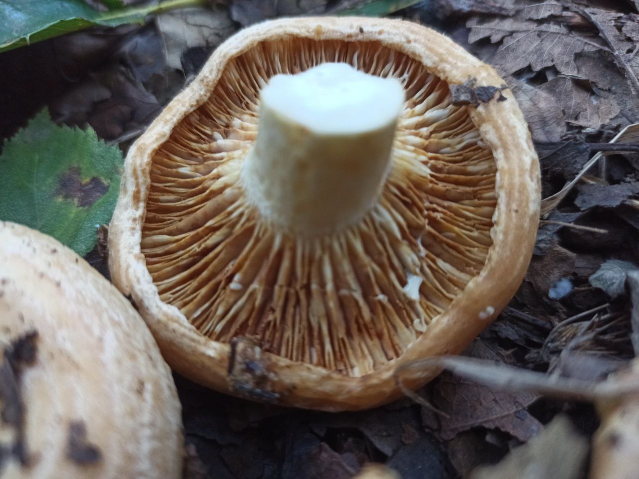 Me he encontrado abundantes eclosiones de esta seta en bosques de roble, castaño y abedul. Entiendo que es un Lactarius pero agradecería si alguien pudiera dar alguna pista más acerca de la especie, en la medida en que sea posible sin microscopio.