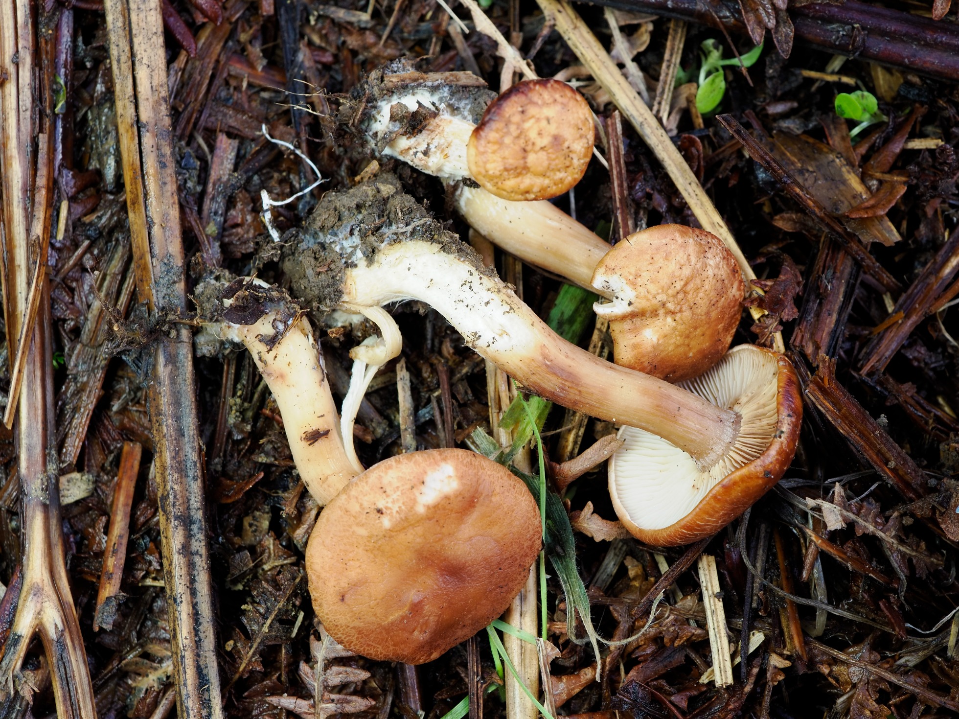 Gracias Javi por aclararnos la tercera, de ahí la importancia del color de la esporada en masa (marrón para Hypholoma y blanco para Tricholoma), es que al ver los ejemplares arrancados no los asocié a Hypholoma