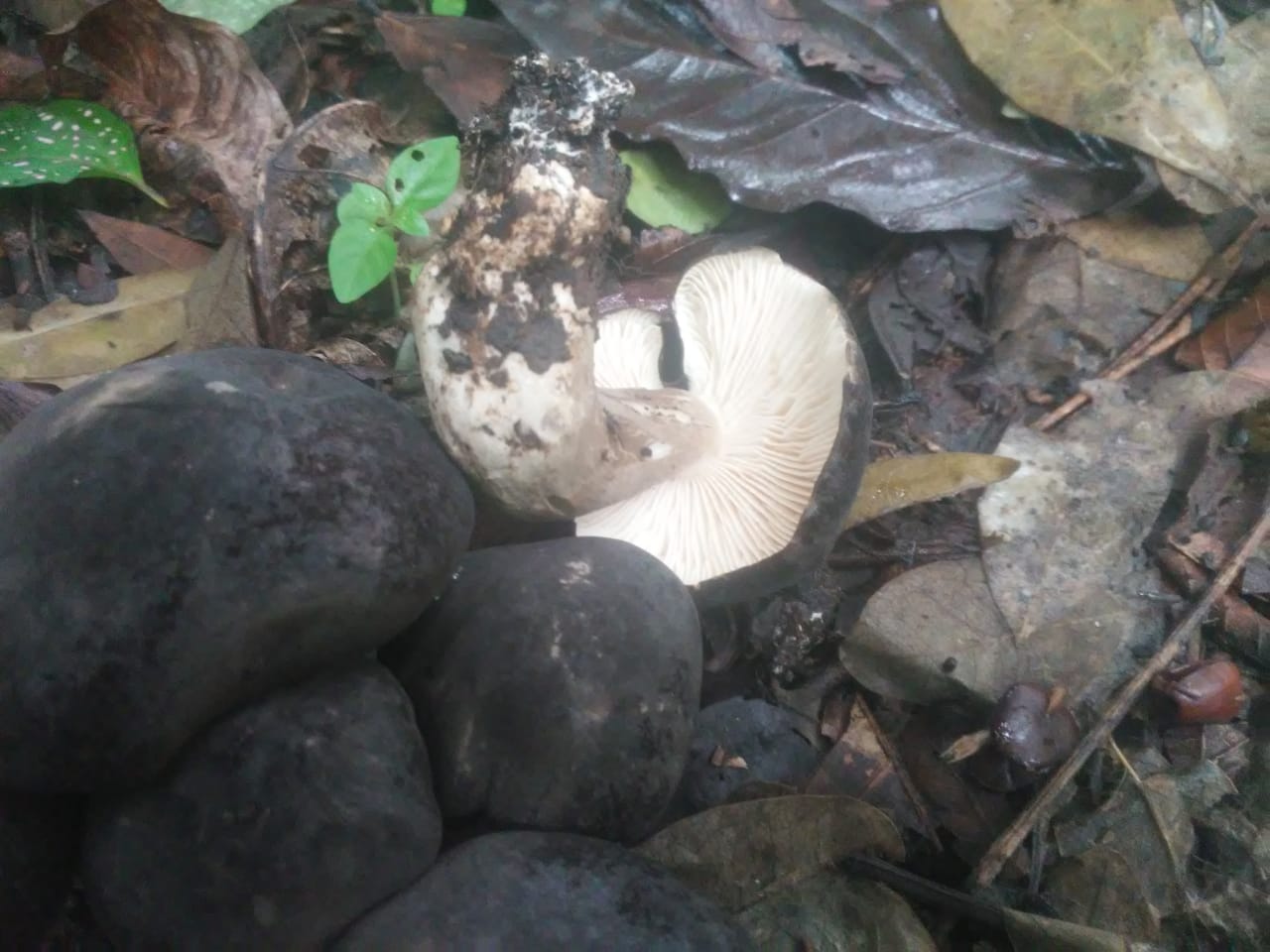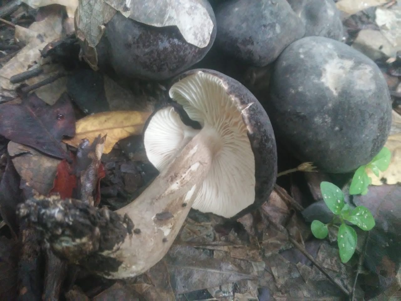 Hola de nuevo Rubén, has comprobado si la carne del pie parte como tiza, es que no descartaría una posible Russula, micorrizando con la planta del café y con sombrero marrón café muy oscuro, tenemos la Russula coffeata, de la que apenas hay información en la red, te dejo la descripción macroscópica de la especie: