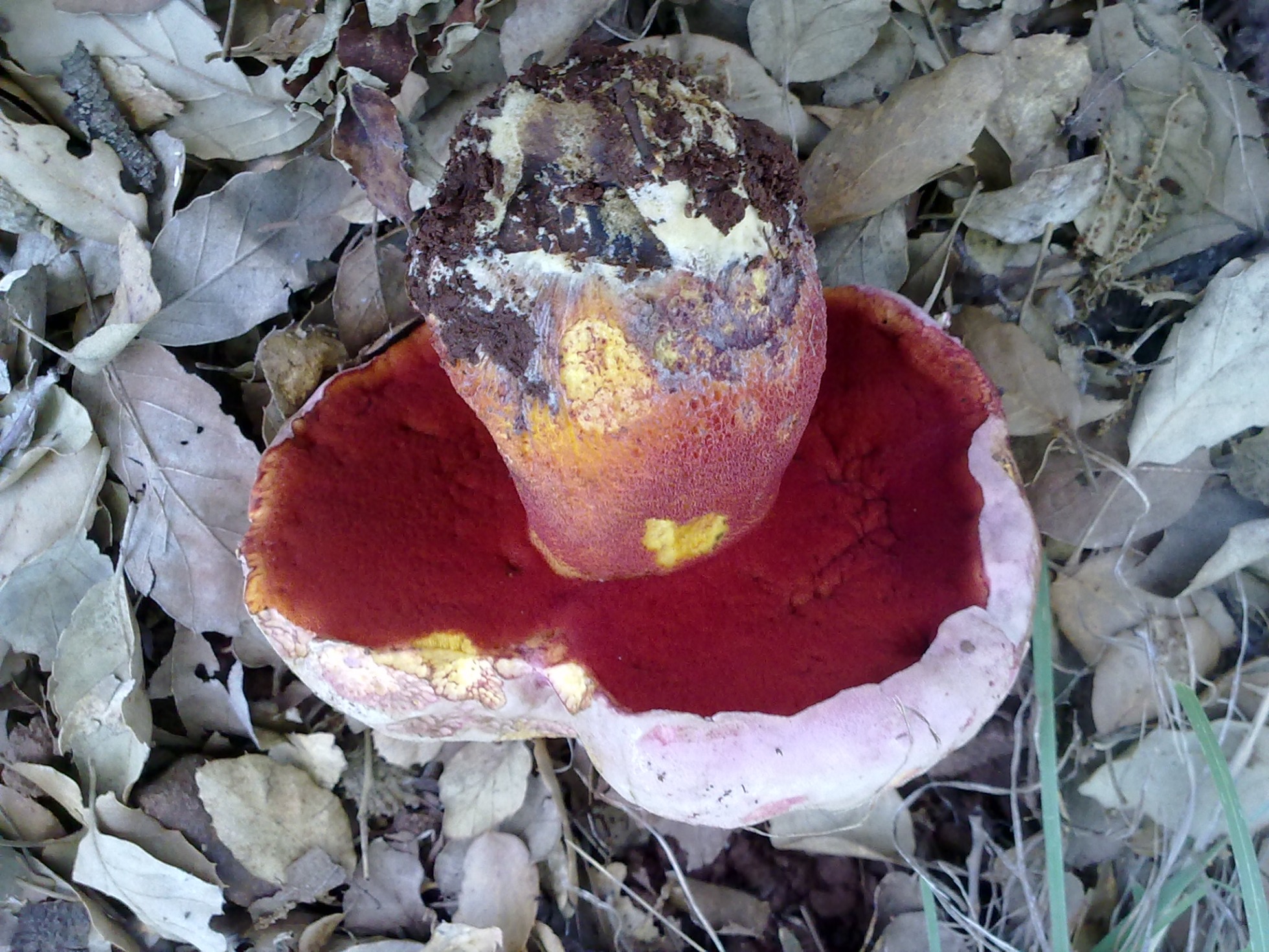Pues yo la verdad no se que pensar, yo me he topado en varias ocasiones con el Boletus rhodoxanthus y siendo un ejemplar tan grande y maduro sus poros deberían ser de un tono rojo bien definido y no amarillos.