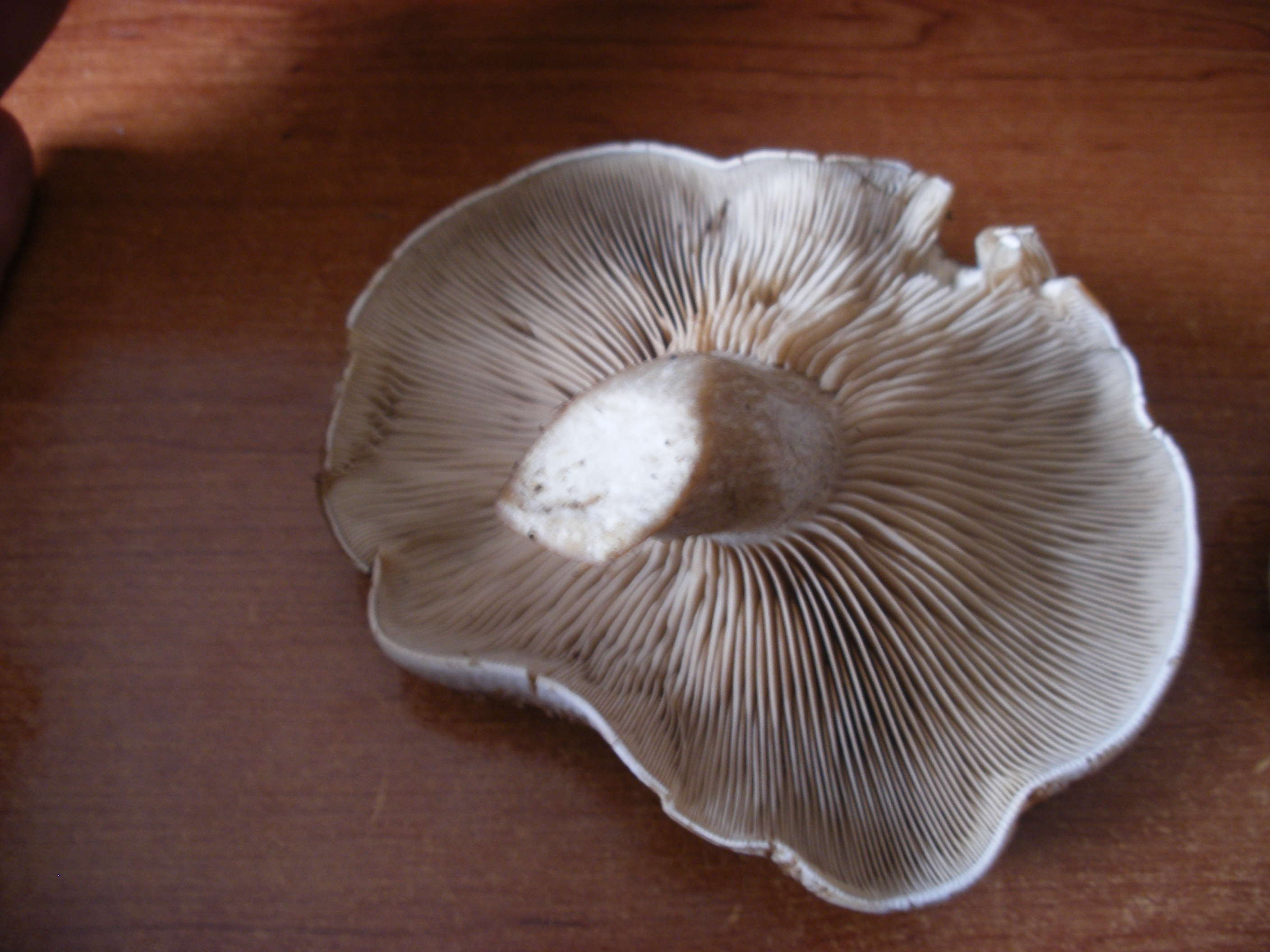 Lepista nebularis.... Pardilla... es lo que me parece...acostumbrate a cogfer y fotografiar un ejemplar siempre completo, sin cortarle el pie