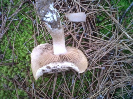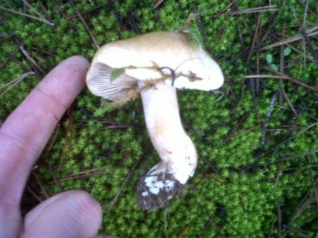 Buenas a todos, soy nuevo en estas lides, os paso fotos de este finde de una seta que hay bastante por mi zona (Guadalajara) y que la gente del pueblo consume habitualmente, pero no tengo claro que tipo es. Sale en misma zona que niscalo y se parece bastante pero al cortarla se vuelve parda en vez de verde como el niscalo.