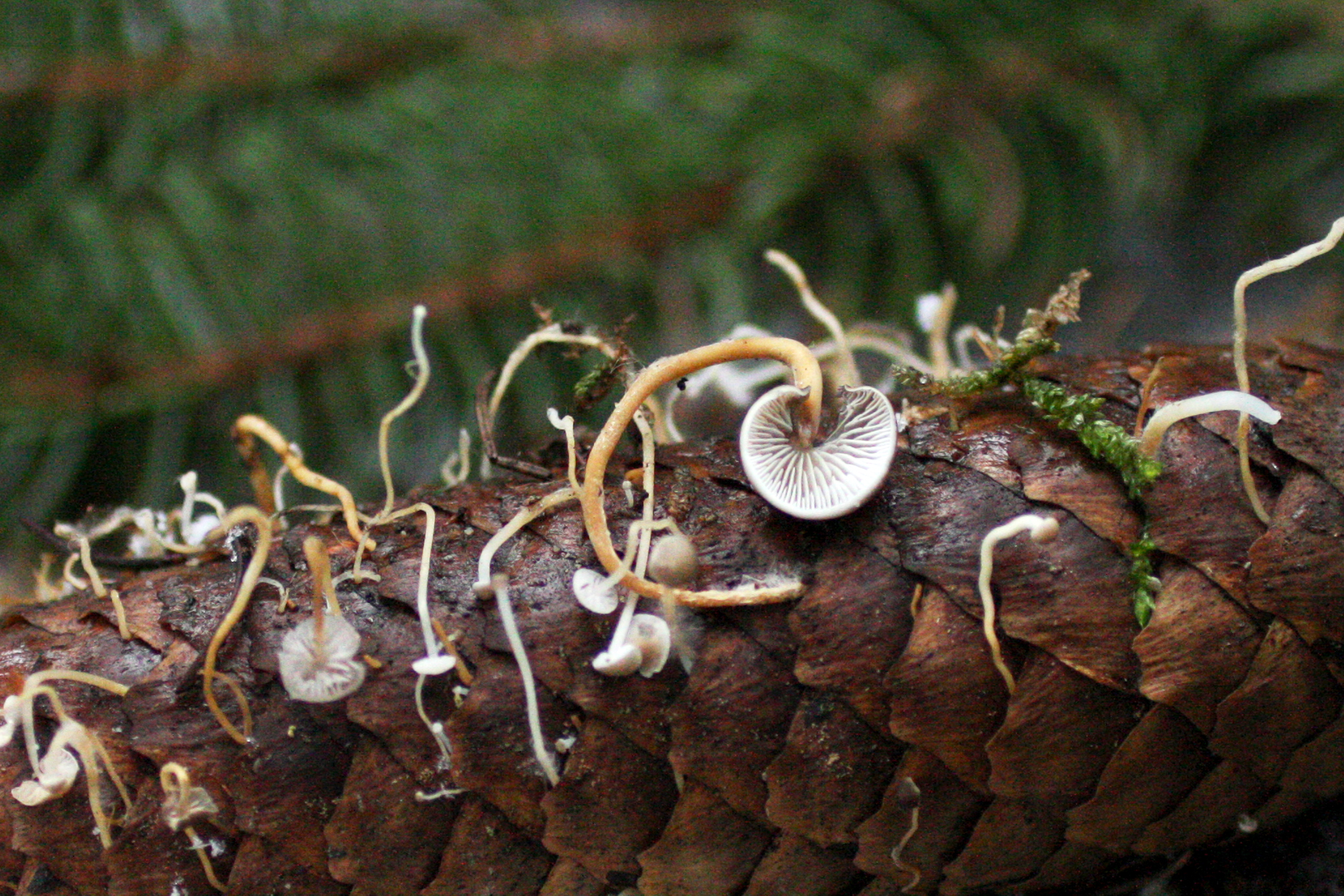 Hola Juan... lamento disentir (Y hasta me da miedo con la que esta cayendo por el foro), pero aunque la foto esta un poco lejana yo apostaria mas por que fueran Baeospora myosura