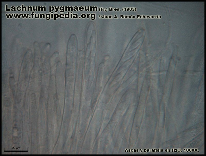 Nueva ficha de Lachnum pygmaeum (Fr.) Bres. (1903). Microscopía. Microscopy. Publicado por Juan Andrés Román