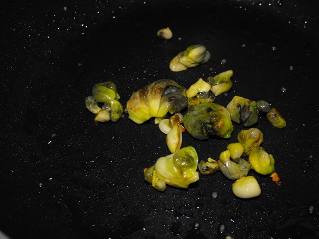 En la cocina, tras sofreírlo a fuego bajo-medio, con los únicos aderezos de media cucharada de aceite de oliva refinado (sabor débil) y un pellizco de sal: