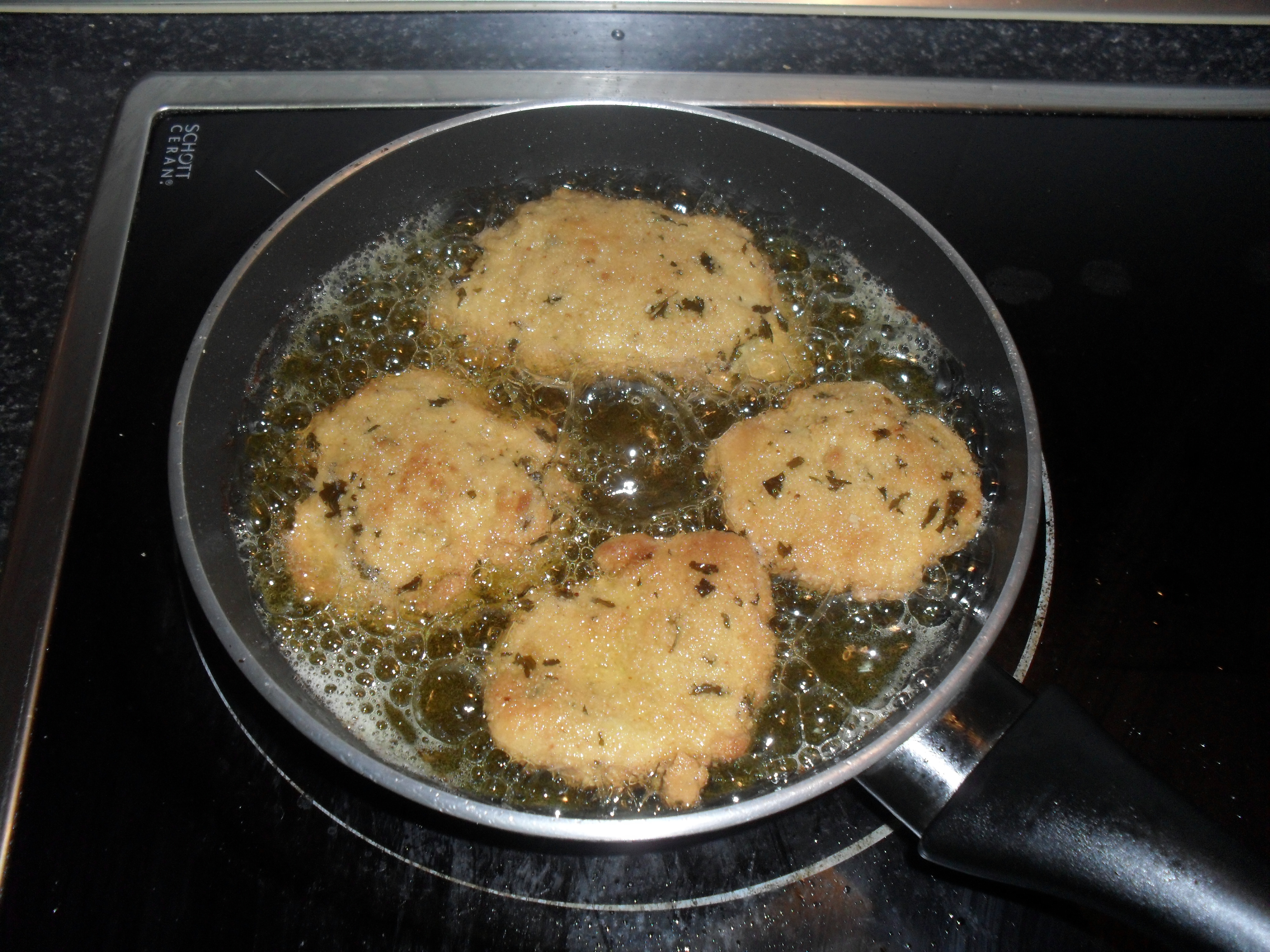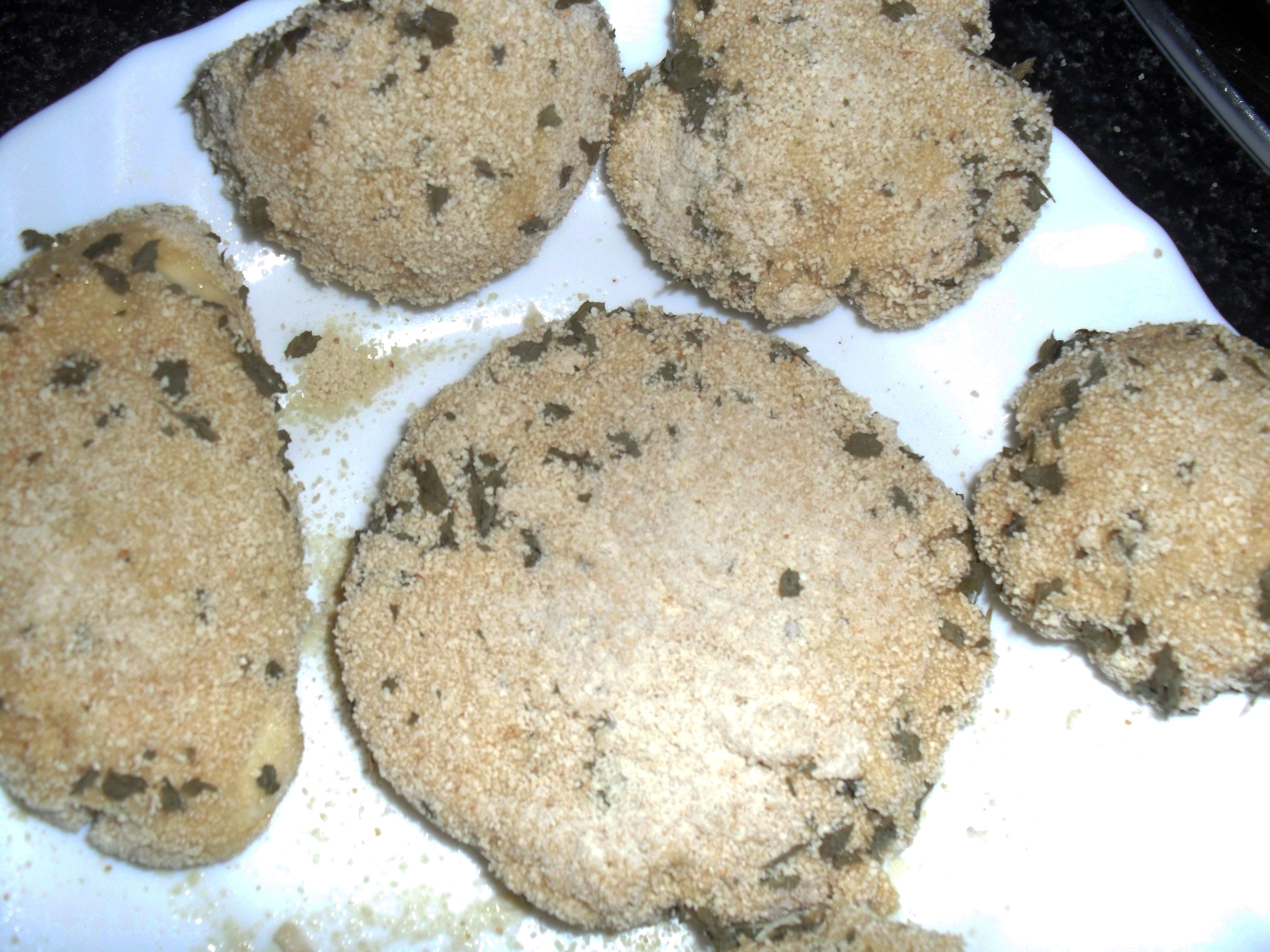 Foto 5.-Y remato la faena pasándolas otra vez por el pan rallado pero esta vez le he añadido un poco de tomillo (poquito) y perejil seco picado.