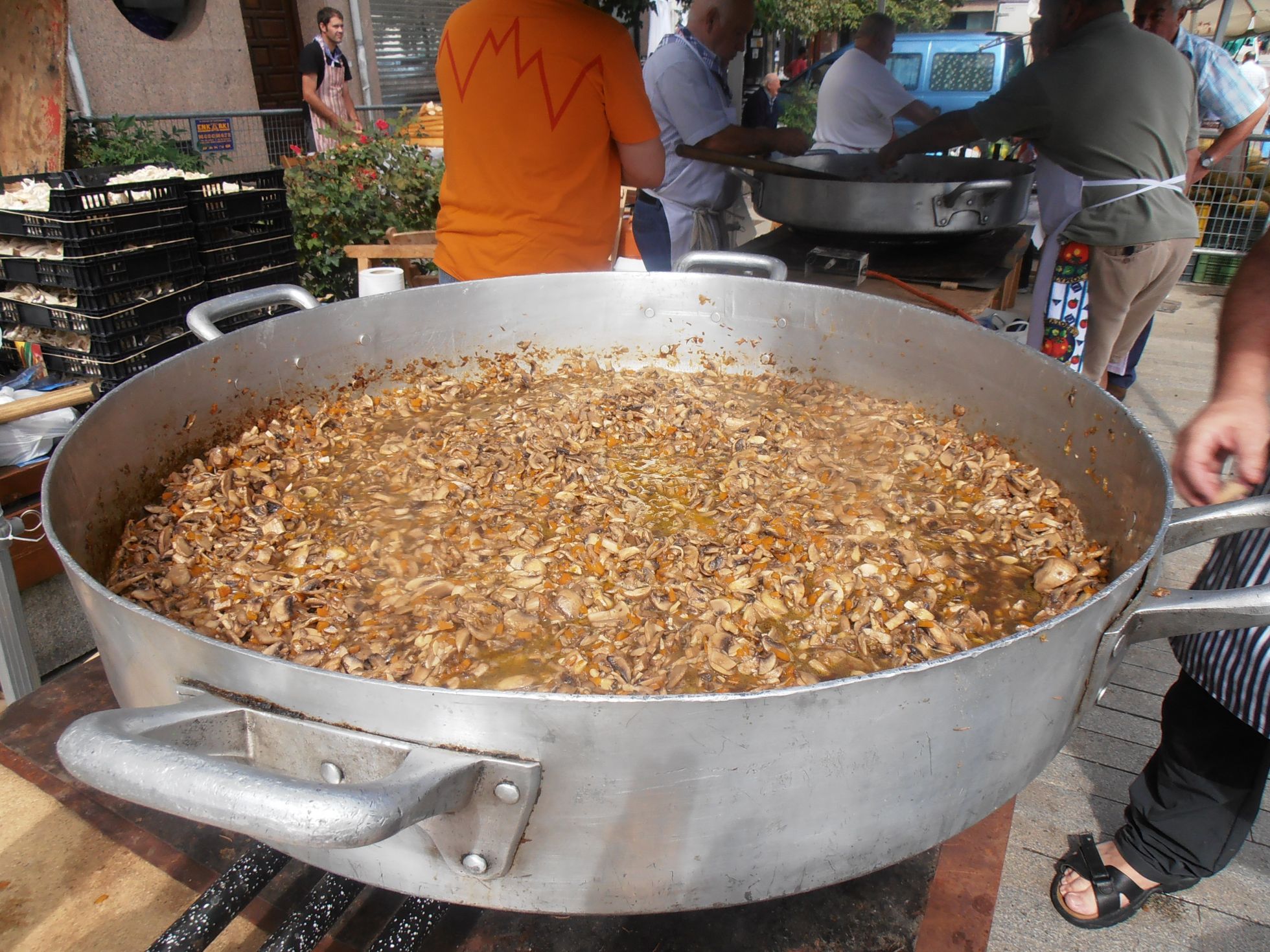 Hola a tod@s, como en muchos otros pueblos , por estas fechas se celebran las fiestas patronales en Amurrio ( Álava). La sociedad micologica Arriola organiza una degustación de pinchos de setas, este año hemos cocinado 50 kgs ( 25 kgs de champiñones y otros 25 de pleurotus) con un resultado magnífico ya que las cazuelas quedaron limpias. Aquí os dejo unas fotos de la preparación.